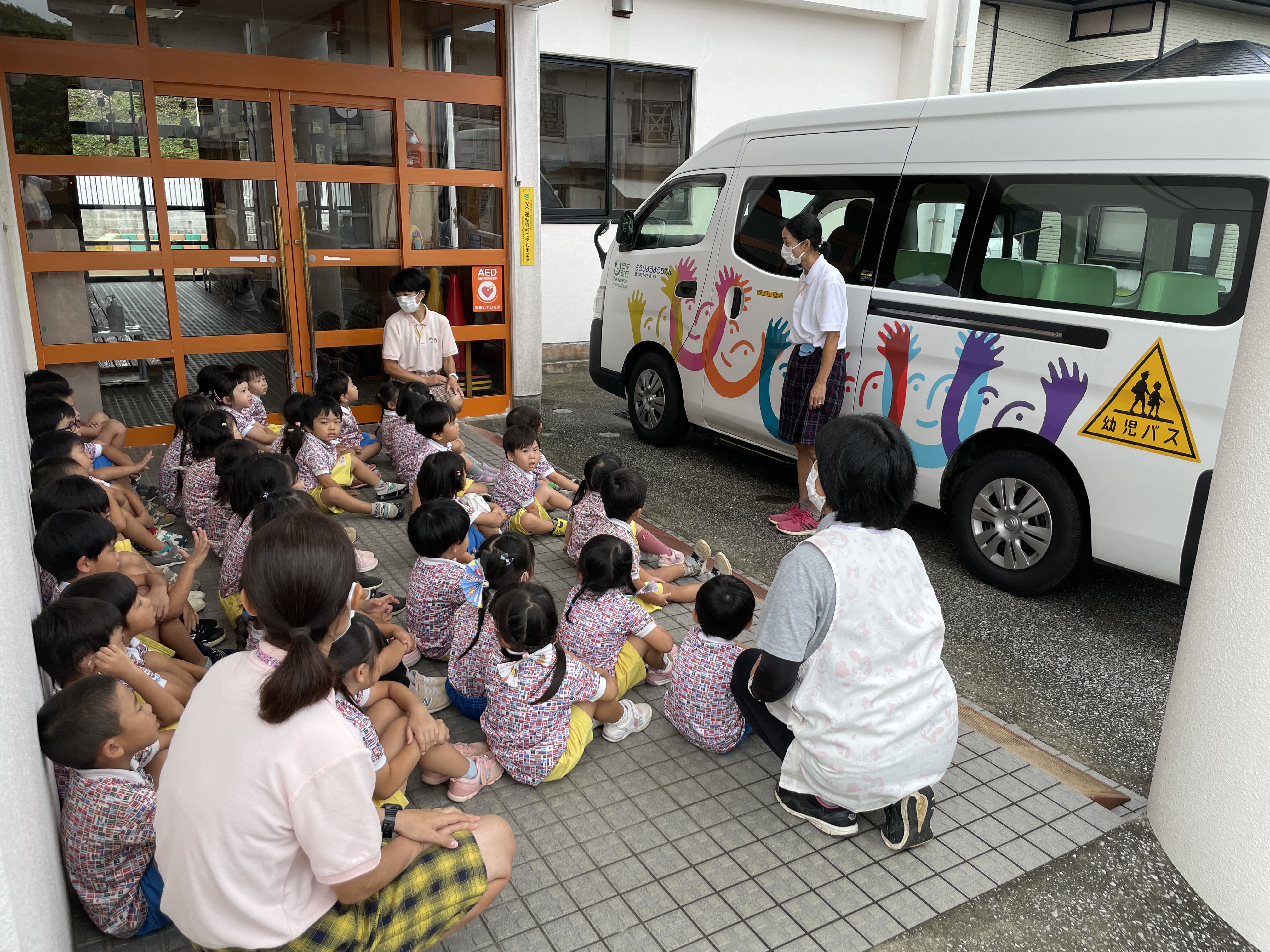 実際に通園バスを使って行いました。少し難しかったですが全員鳴らすことができました。