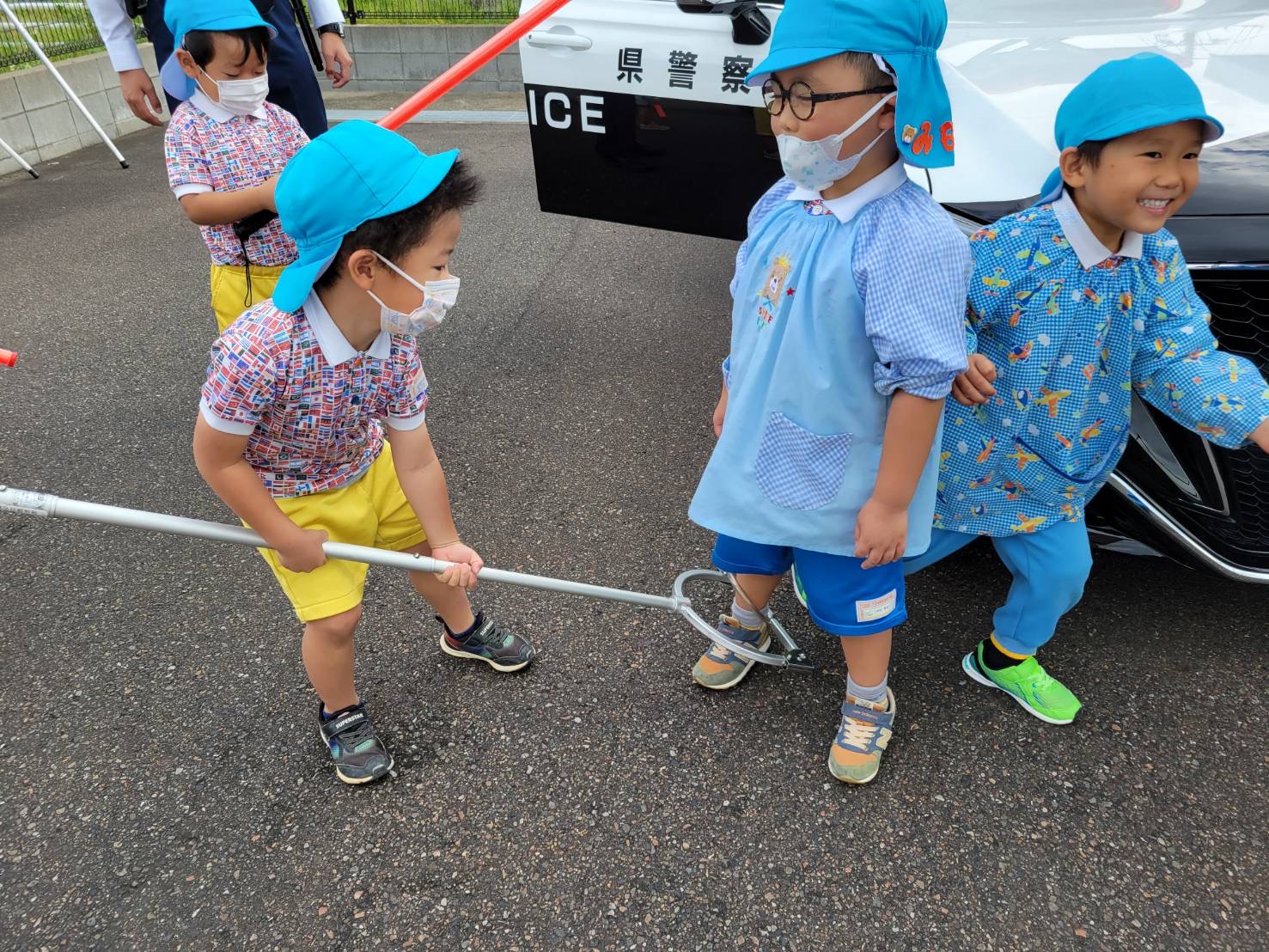 交番ではお巡りさんが使うものを色々見せて頂き実際に使わせてもらいました。