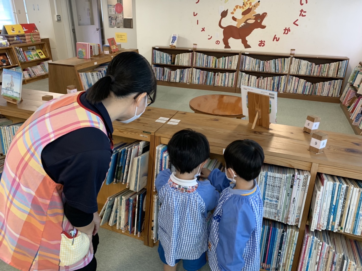 初めてのお友達。それぞれでしたが、たくさんの絵本に大喜び。