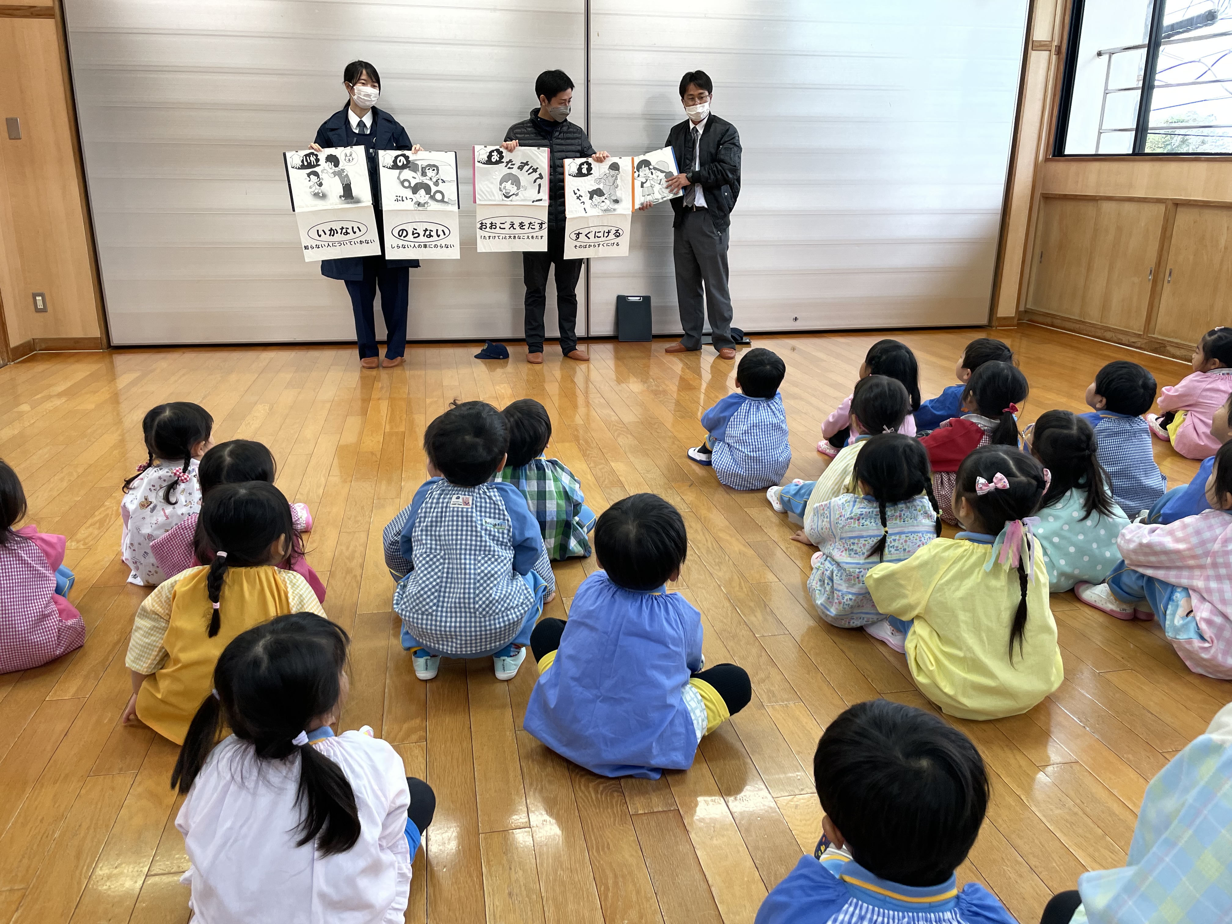 職員が不審者を確保し、お子様方は避難できました。