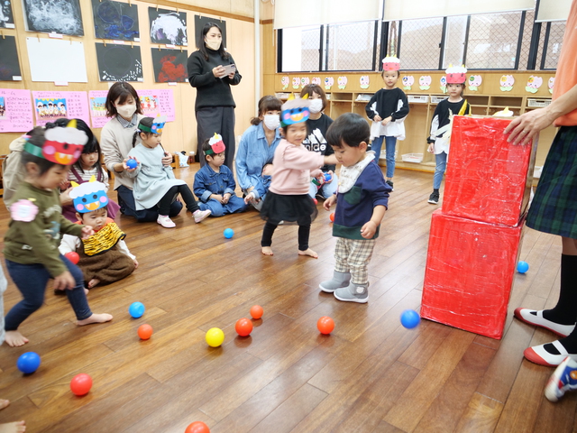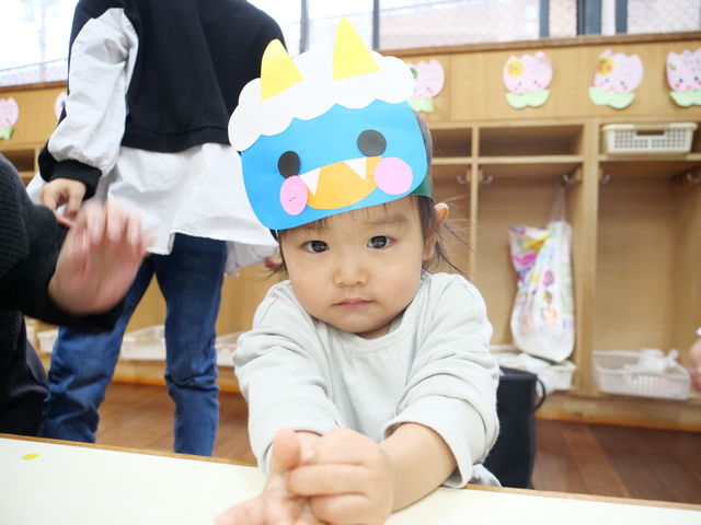 「おには~そとー ふくは~うちー」とじょうずでしたよ。