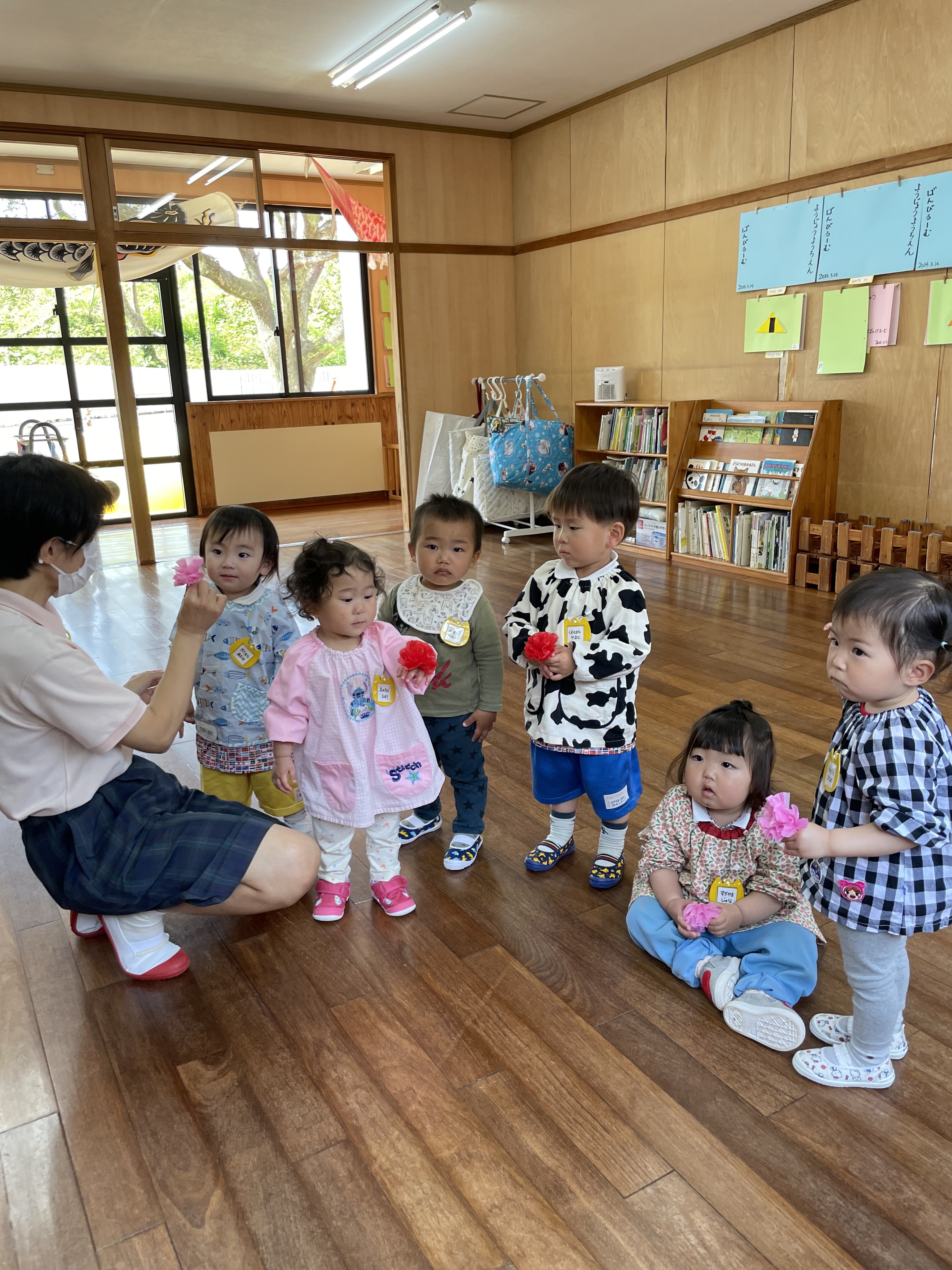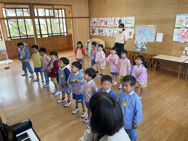 春の歌 ちゅうりっぷ? ちょうちょ を元気に振り付きで楽しく歌っていました♬