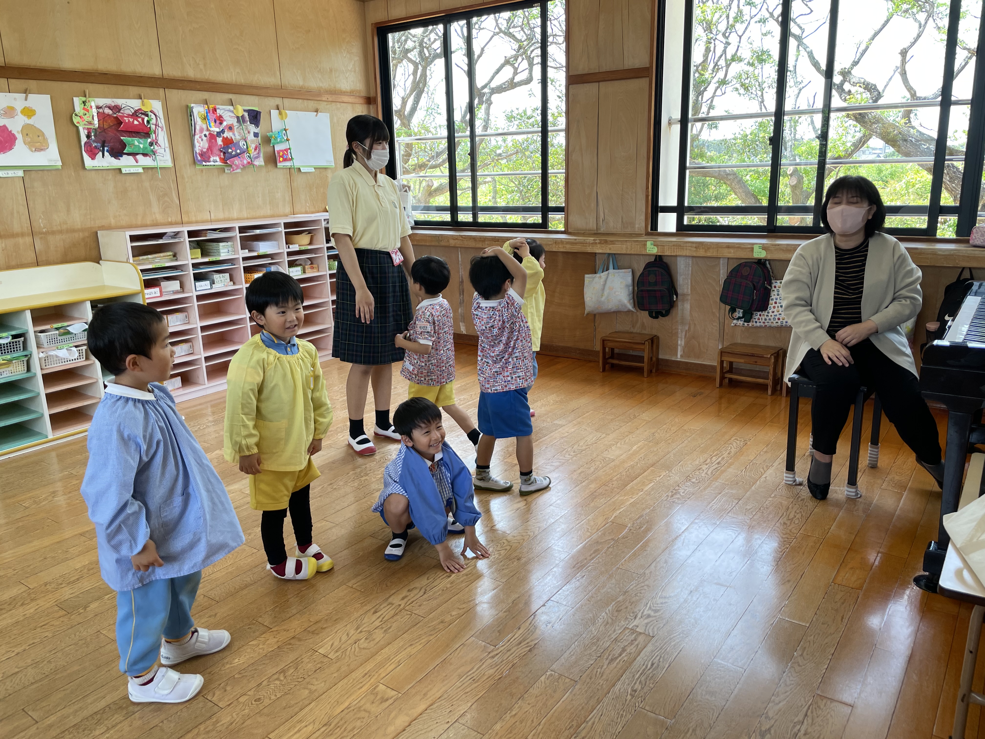 リズム遊びや体操、カード取りゲームもしましたよ。