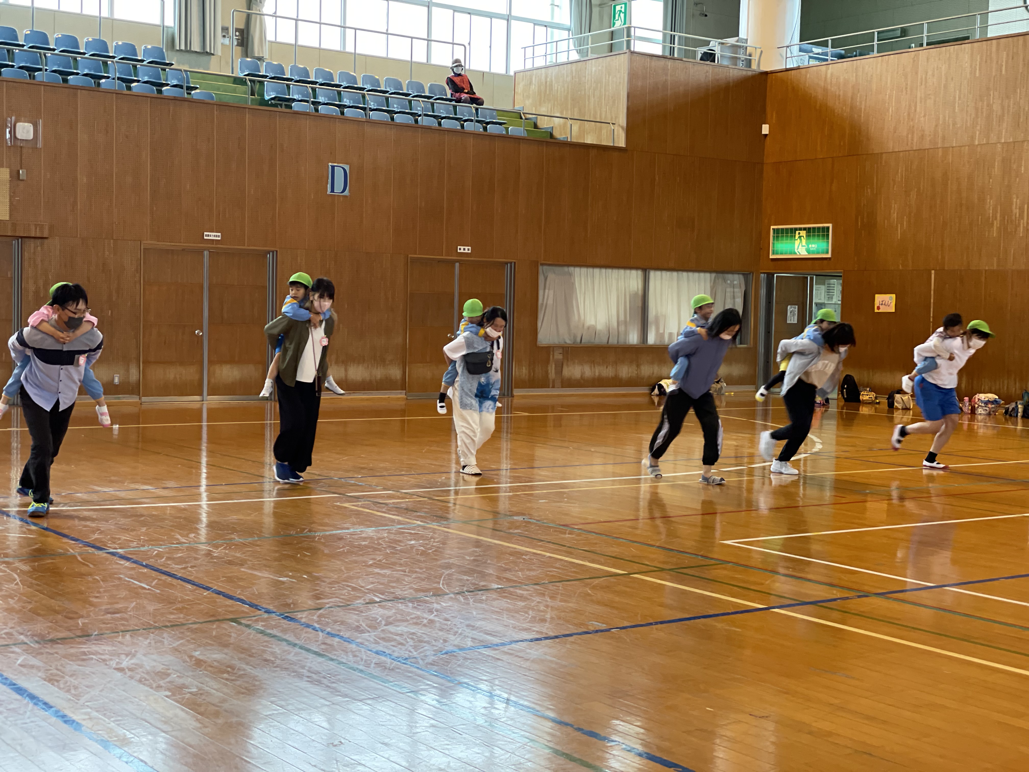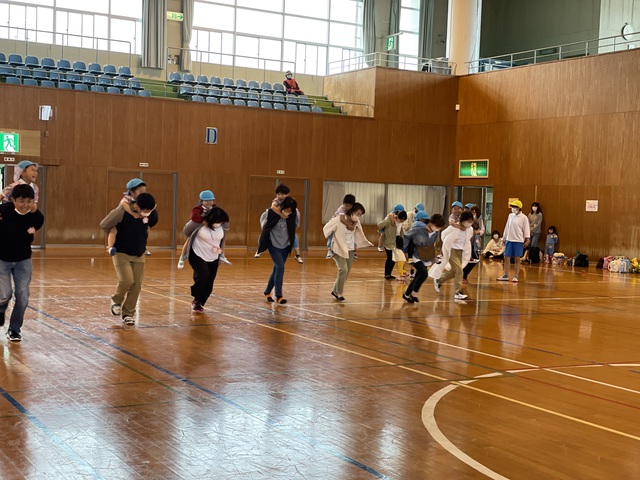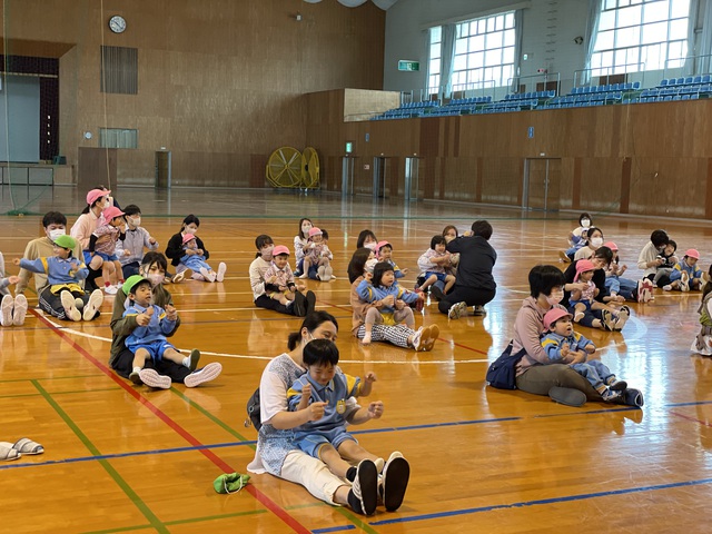 今日は曇り空・・・雨天の予報だったので体育館で行いました。