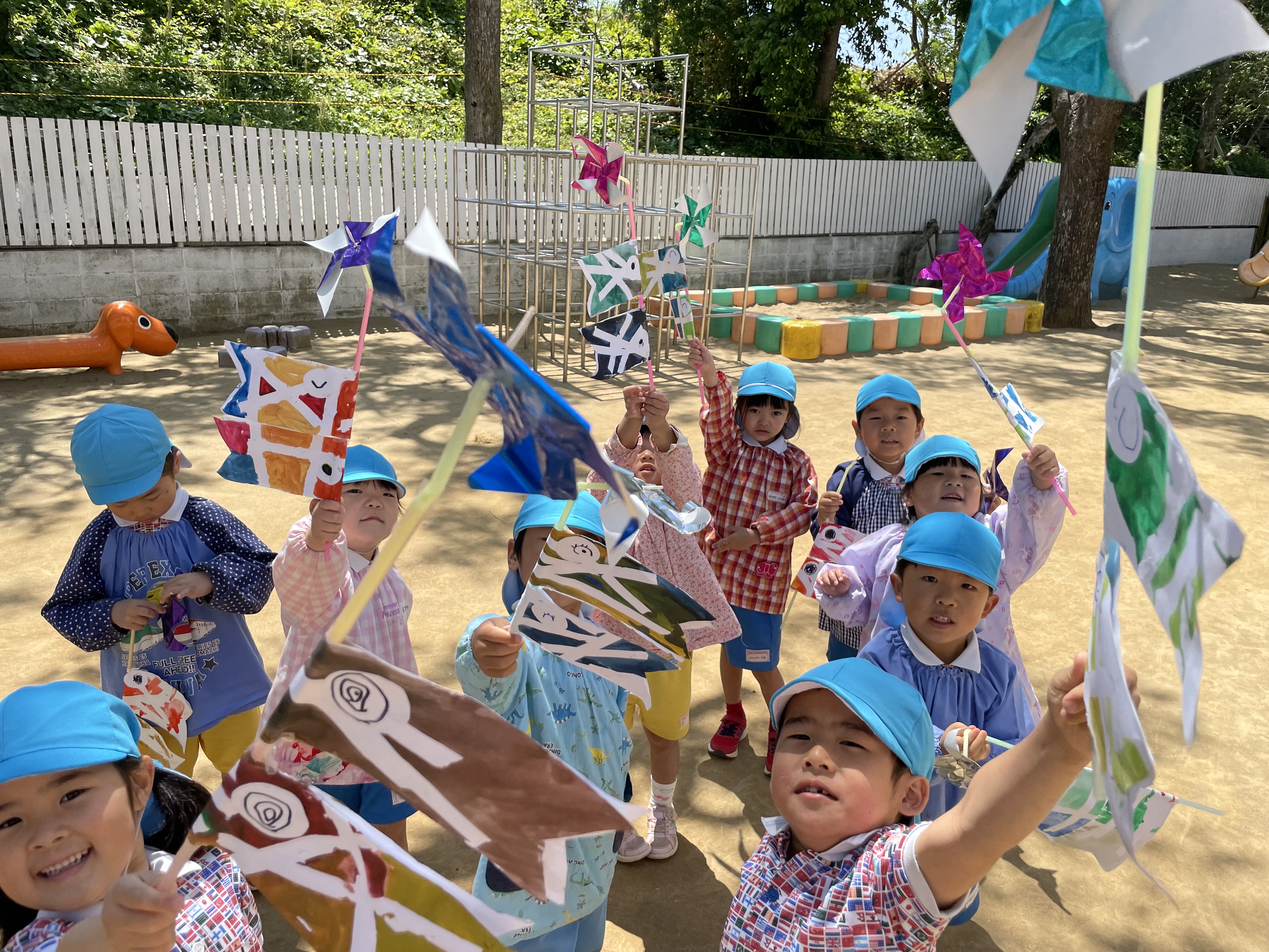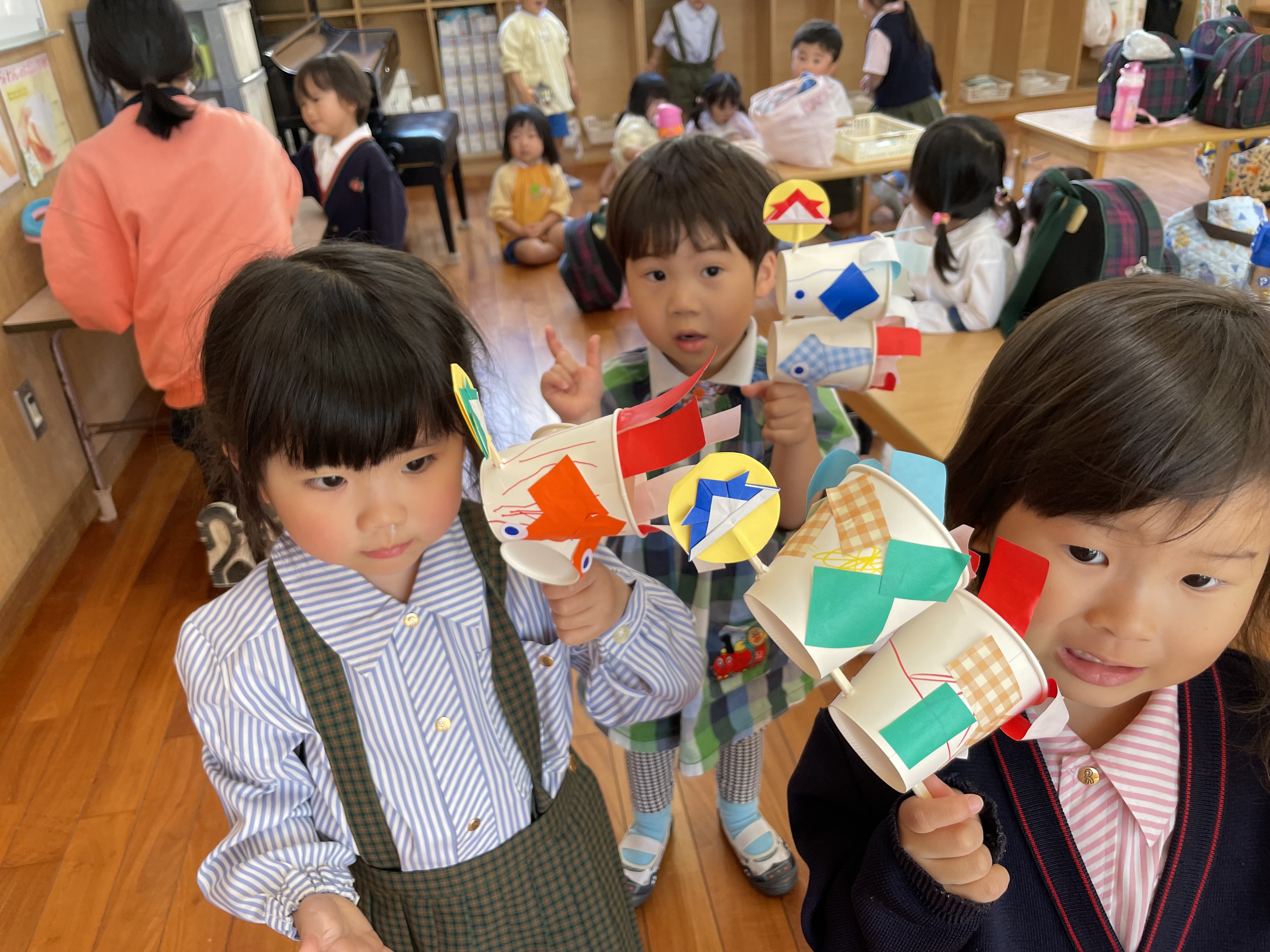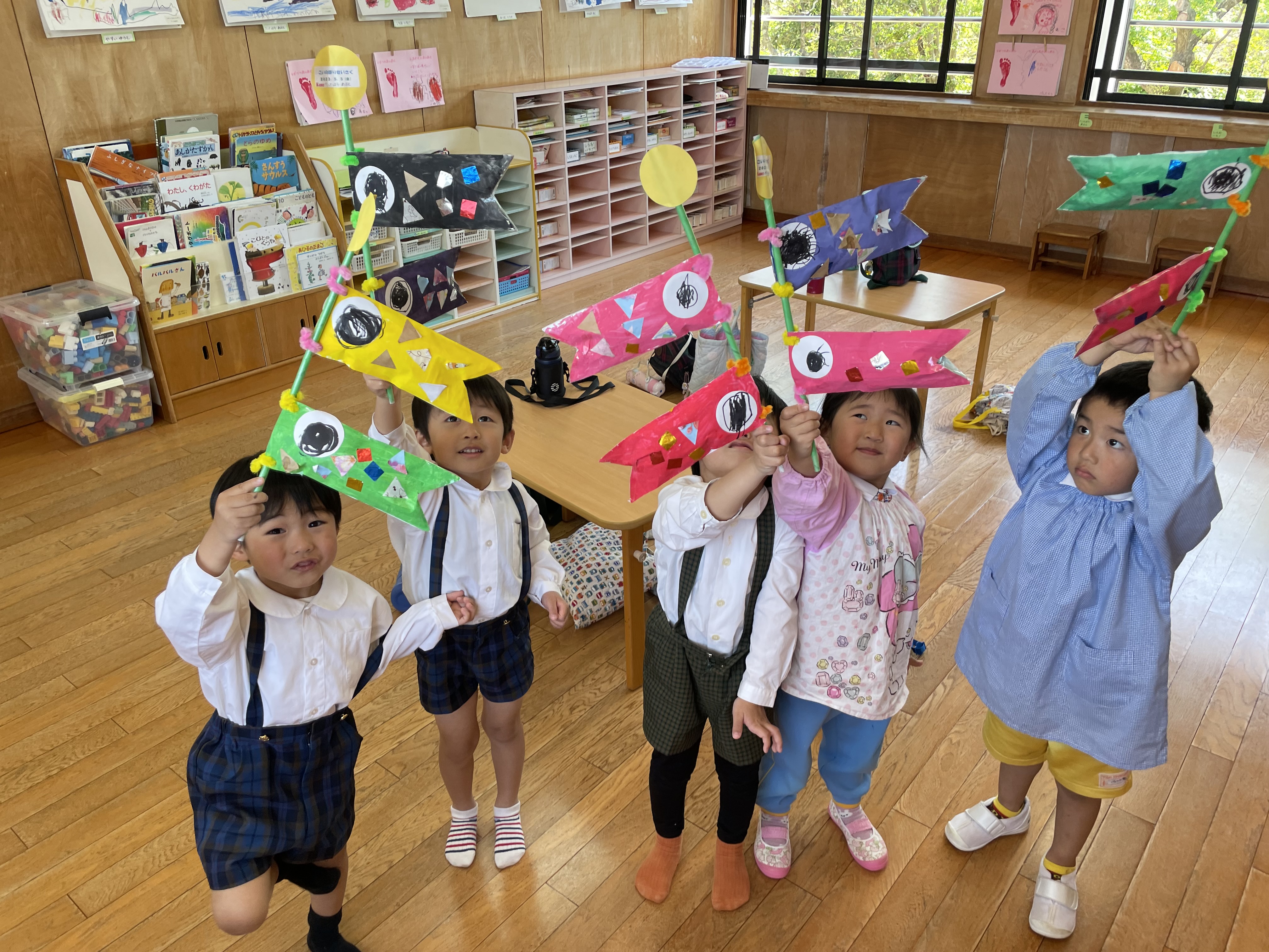 学年に合わせての製作過程があり、それぞれすてきなこいのぼりができていました?