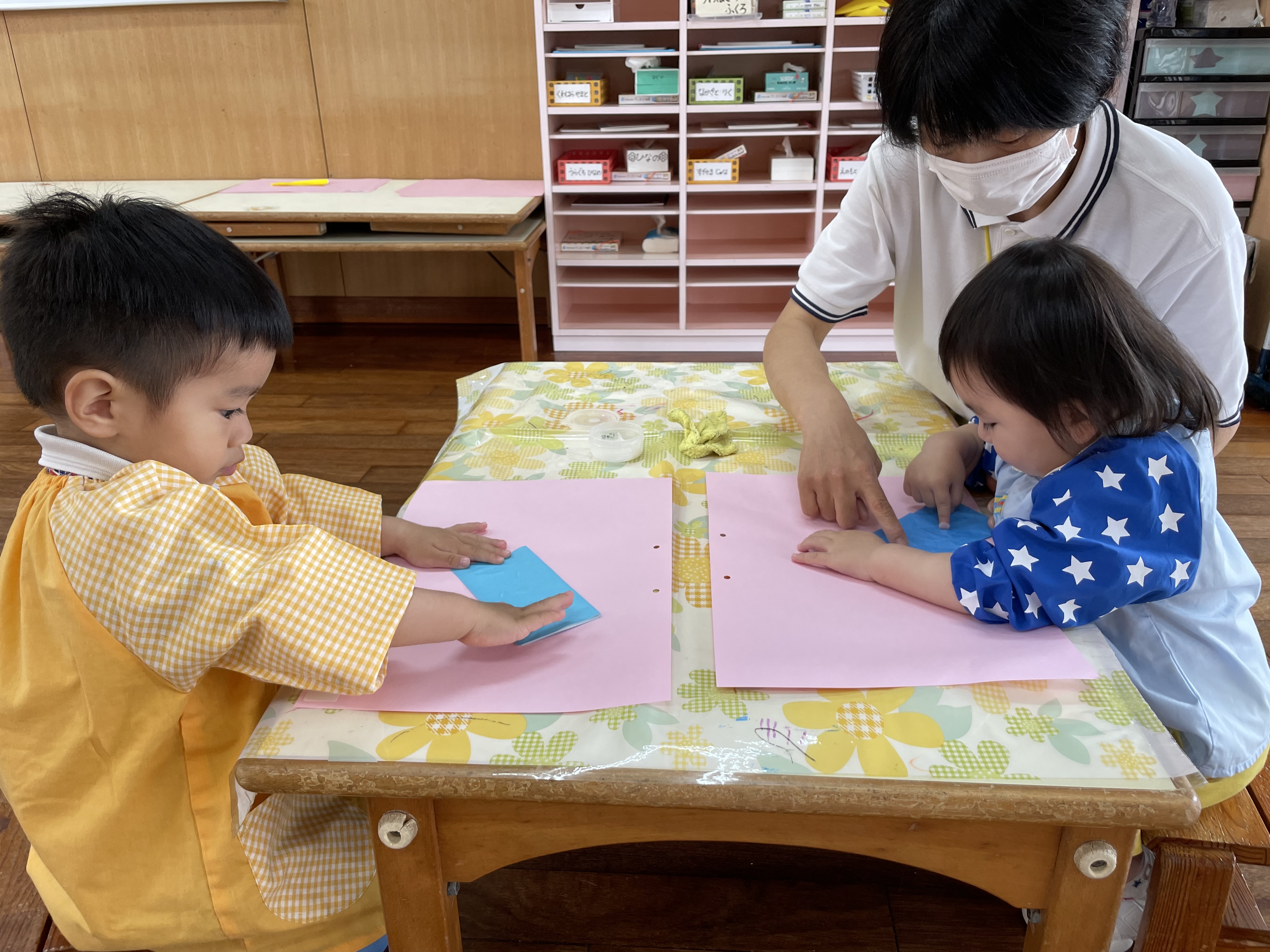 喜んでいました。のりの使い方も少しずつ練習中です。