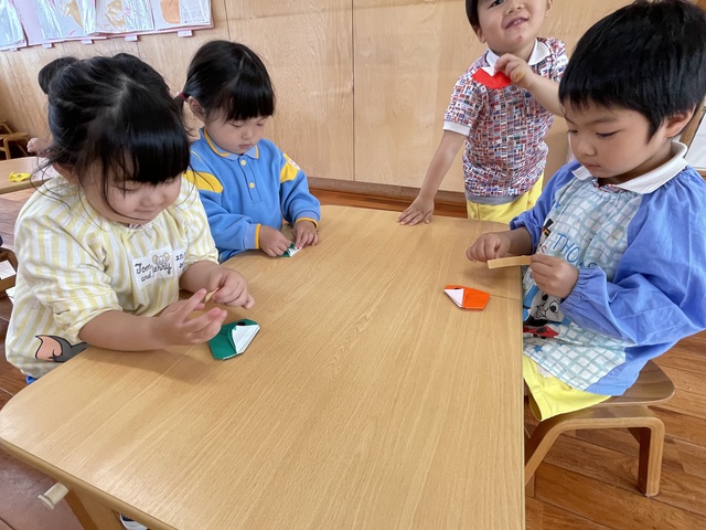 折る回数も沢山でしたが、頑張っていましたよ。「自分でできるよ!」「こう?あってる?」と確認もしていました。