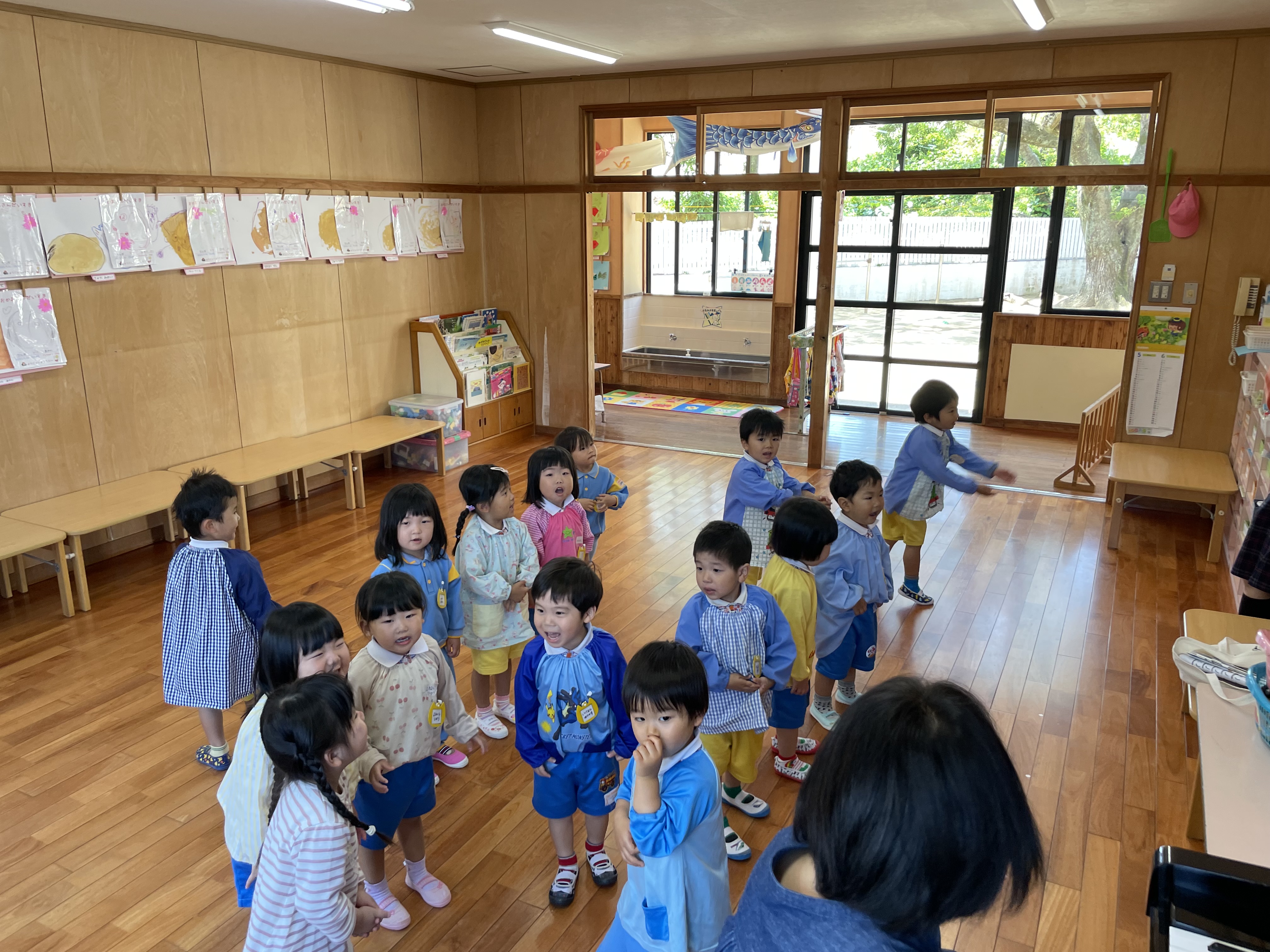 バンビさんはピアノのリズムに合わせて体を動かし、ちゅうりっぷの歌も楽しそうに歌っていました。