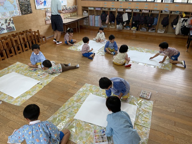 真っ白い大きな紙にどんどん絵が描かれていきました!