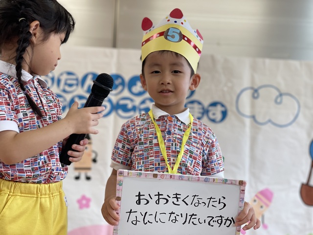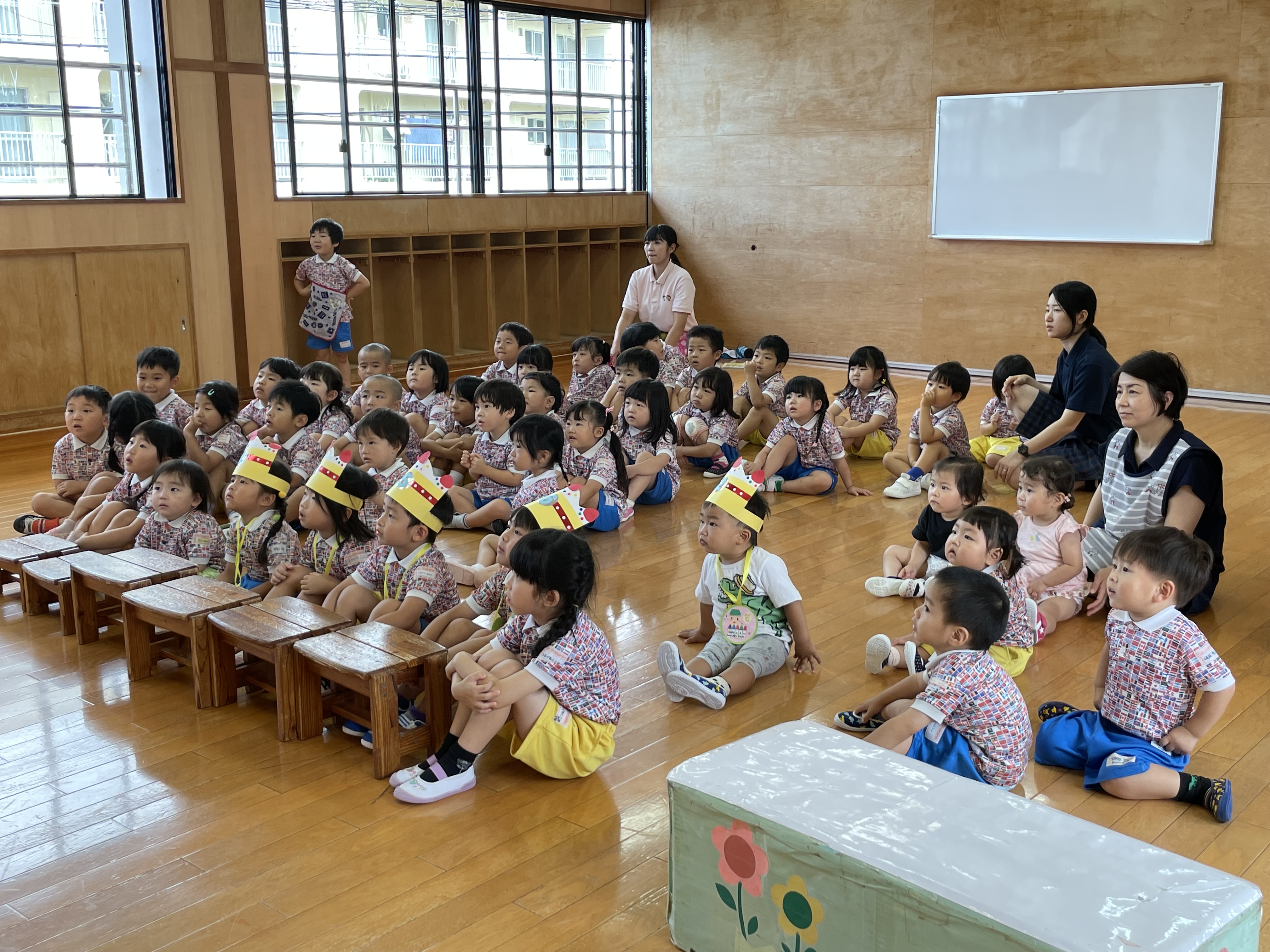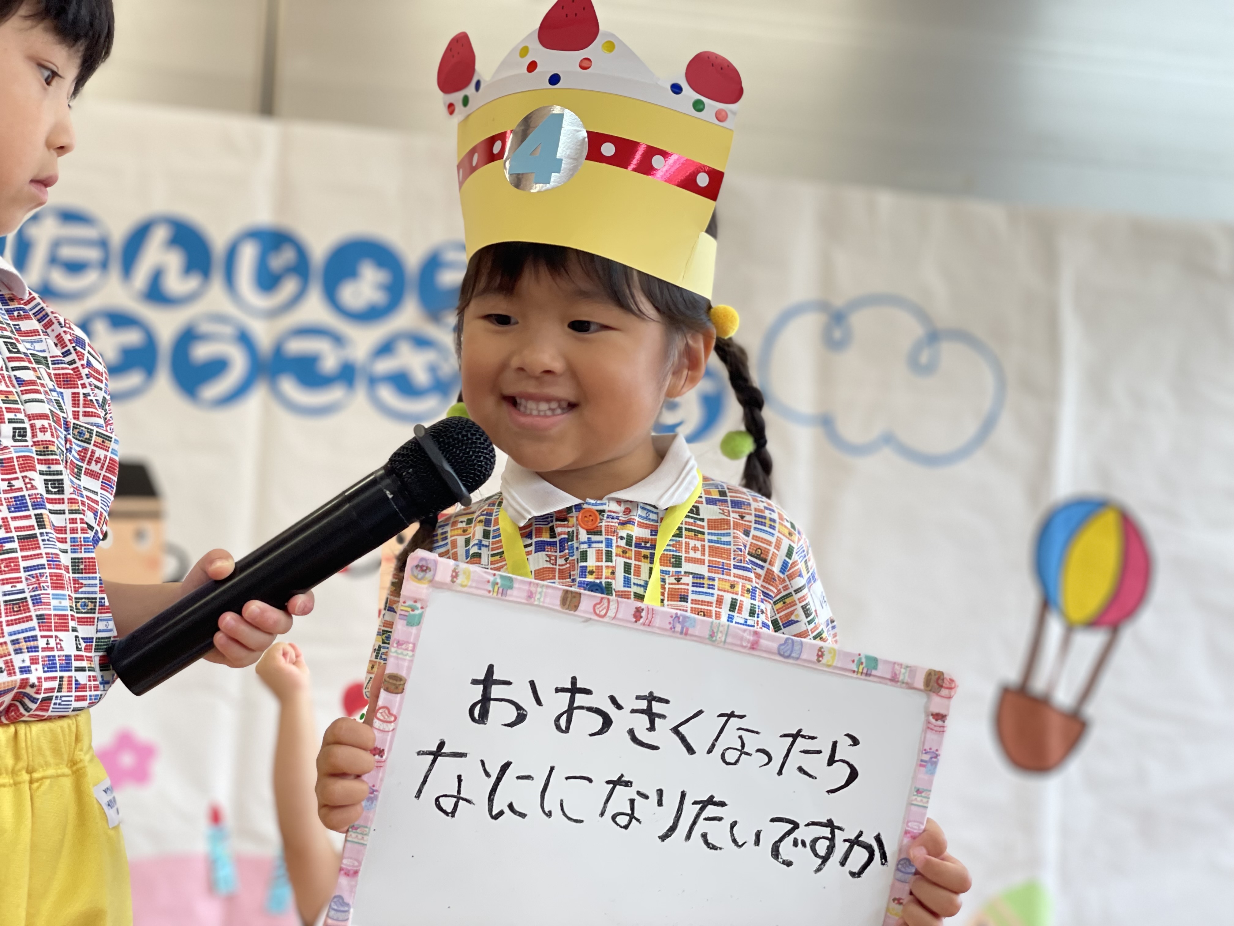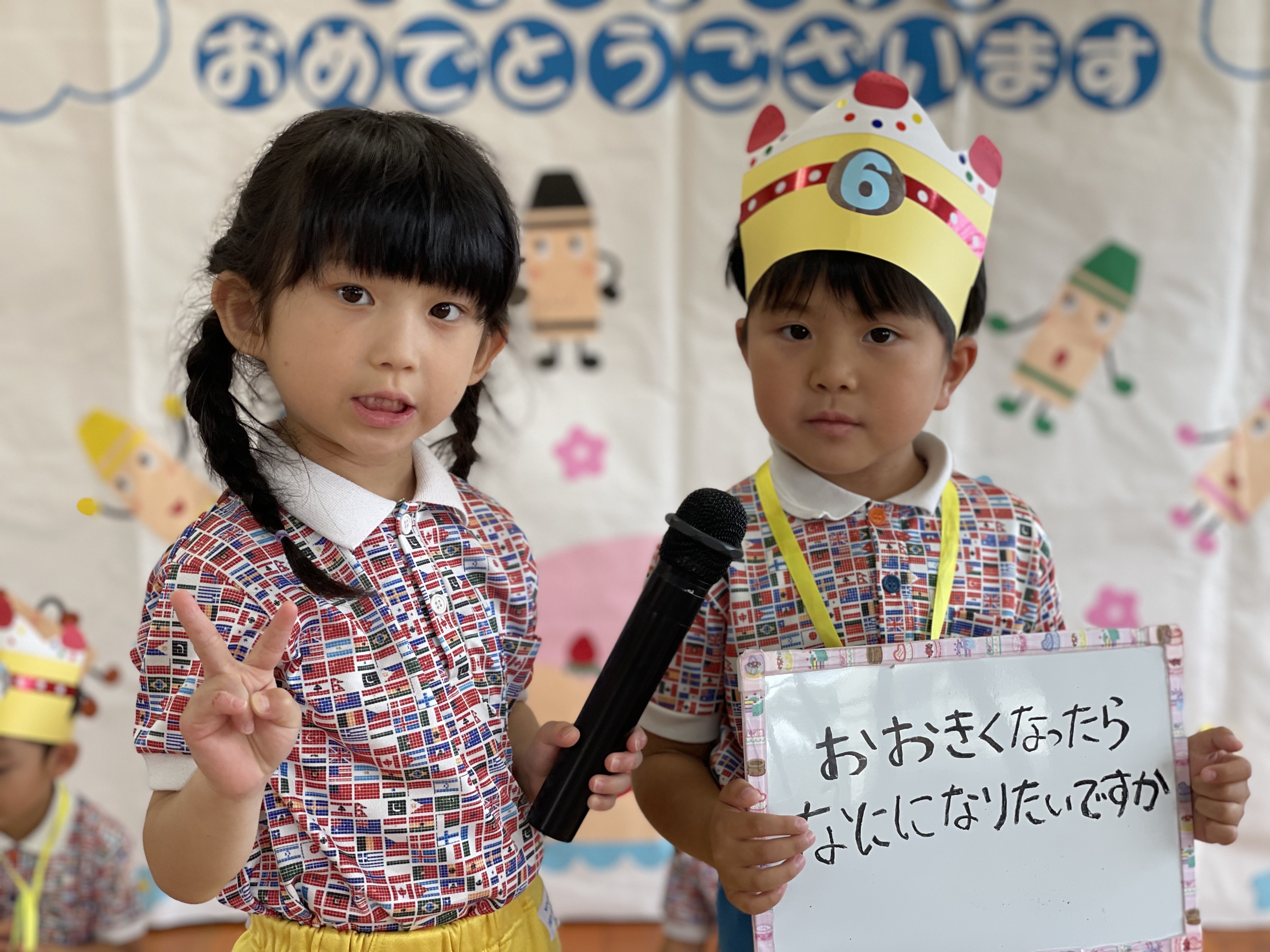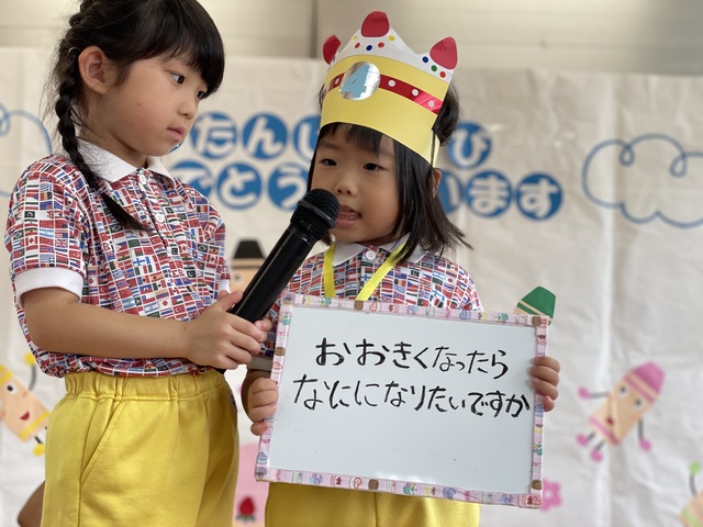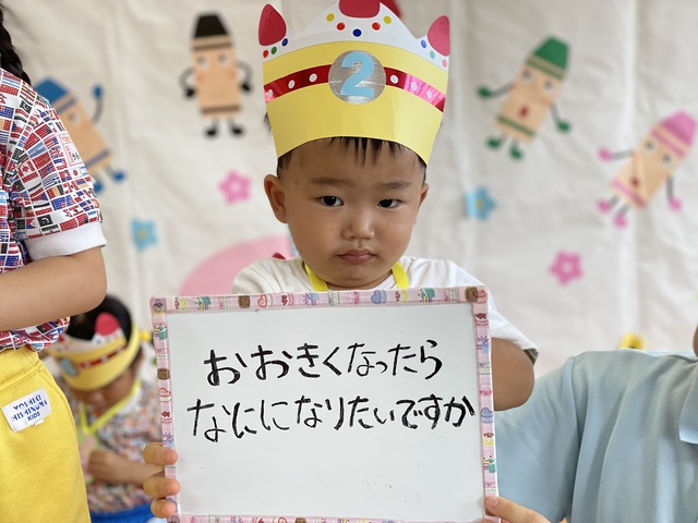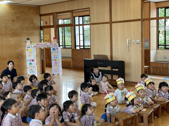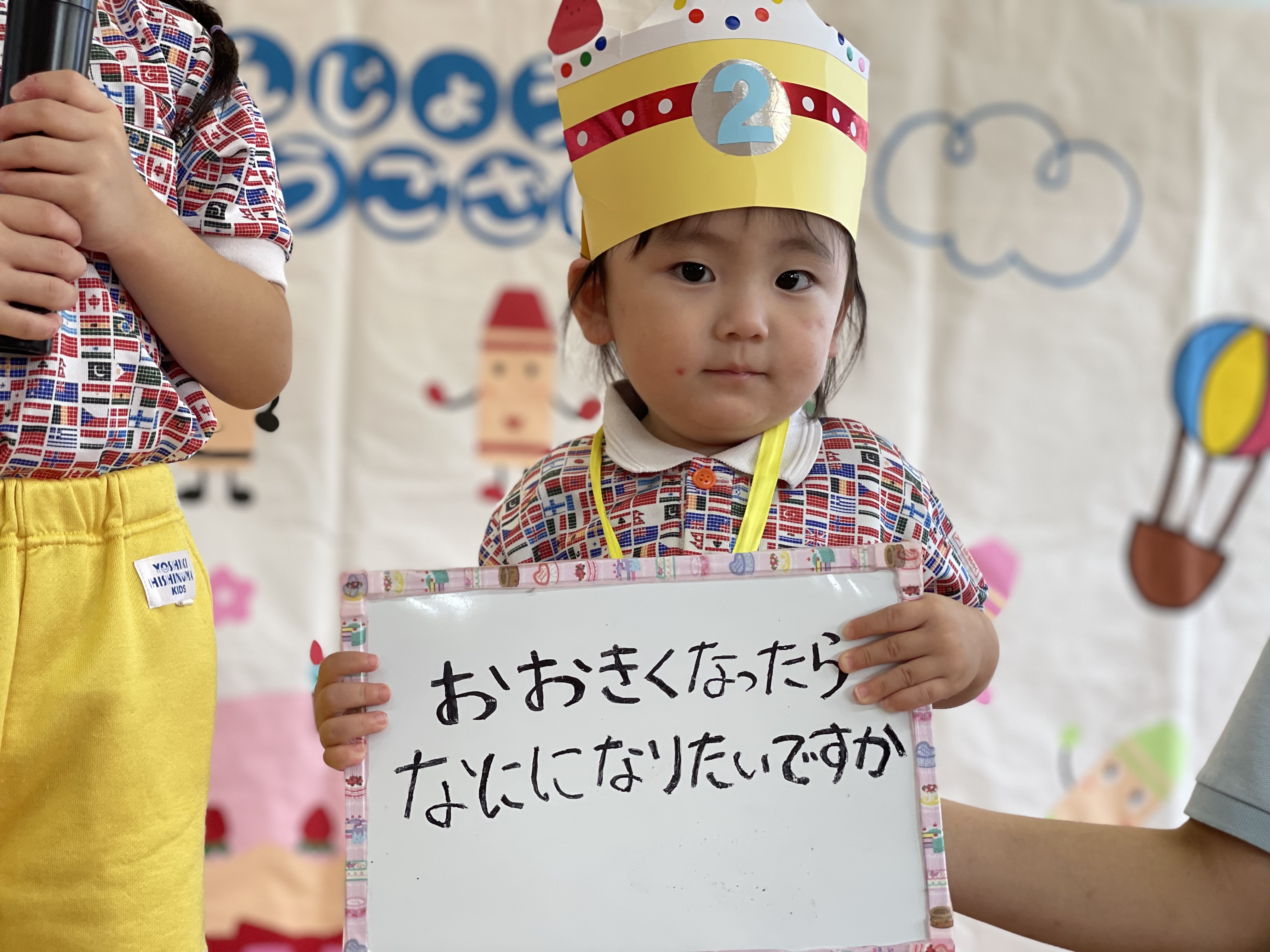 お誕生日のお子様方が入場してきました。司会のおともだちも