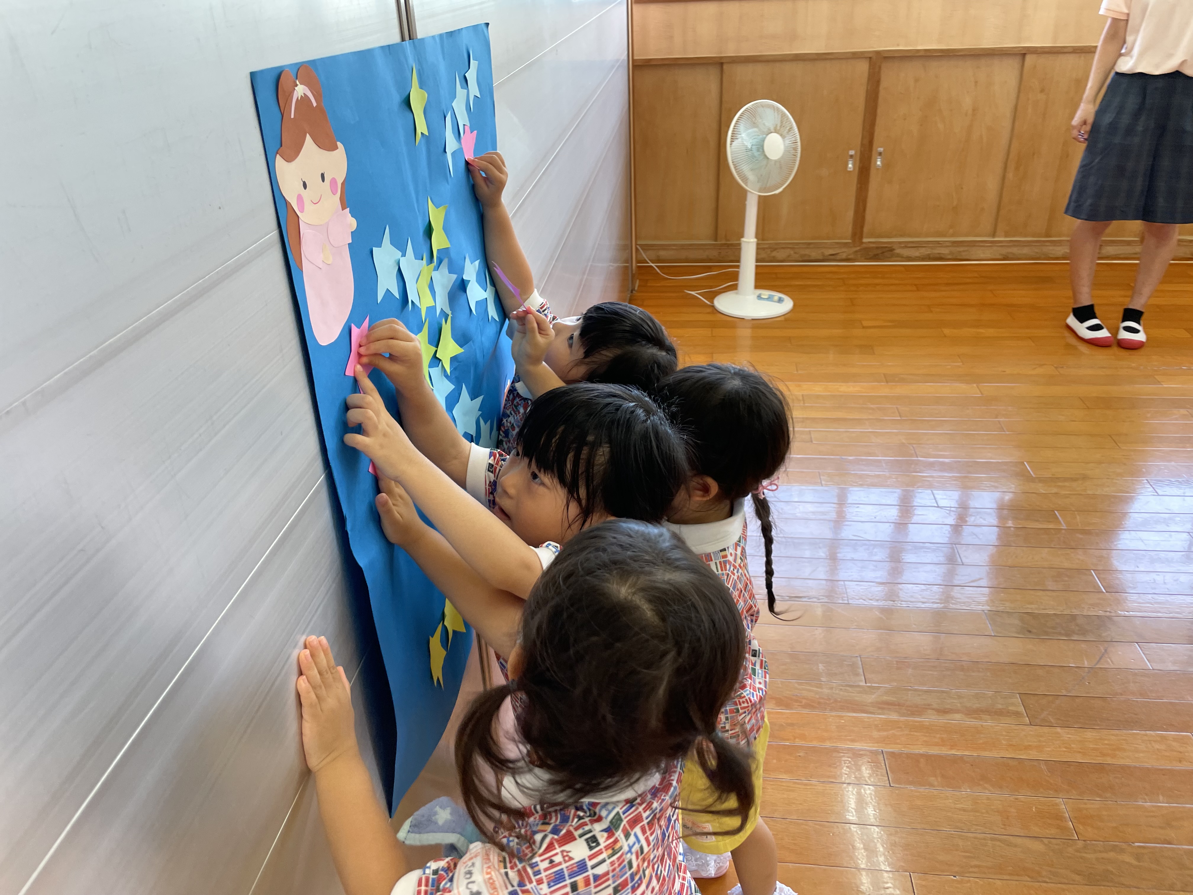 七夕の由来をスケッチブックシアターで見ました。