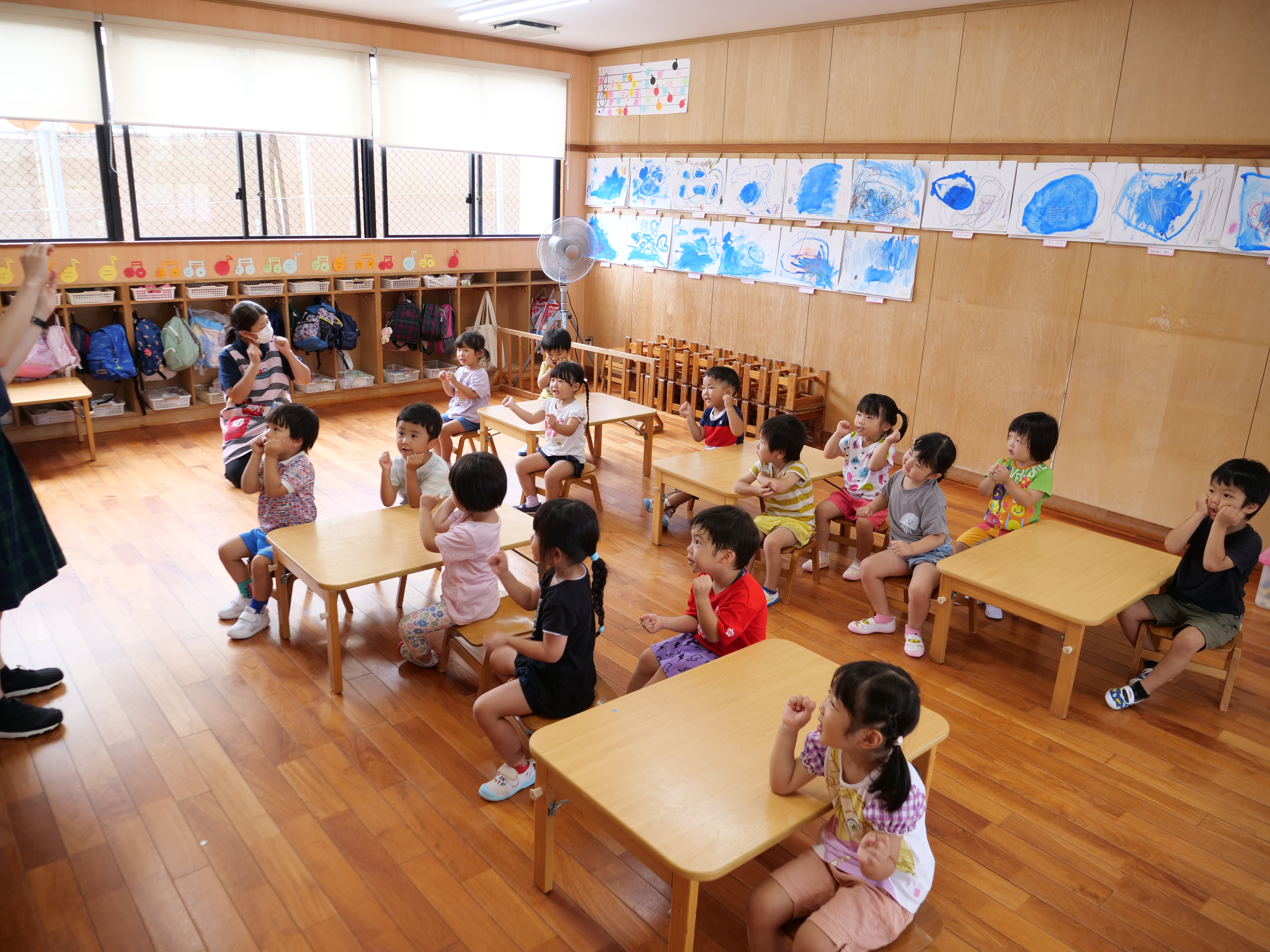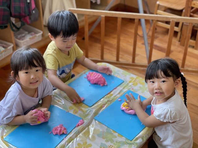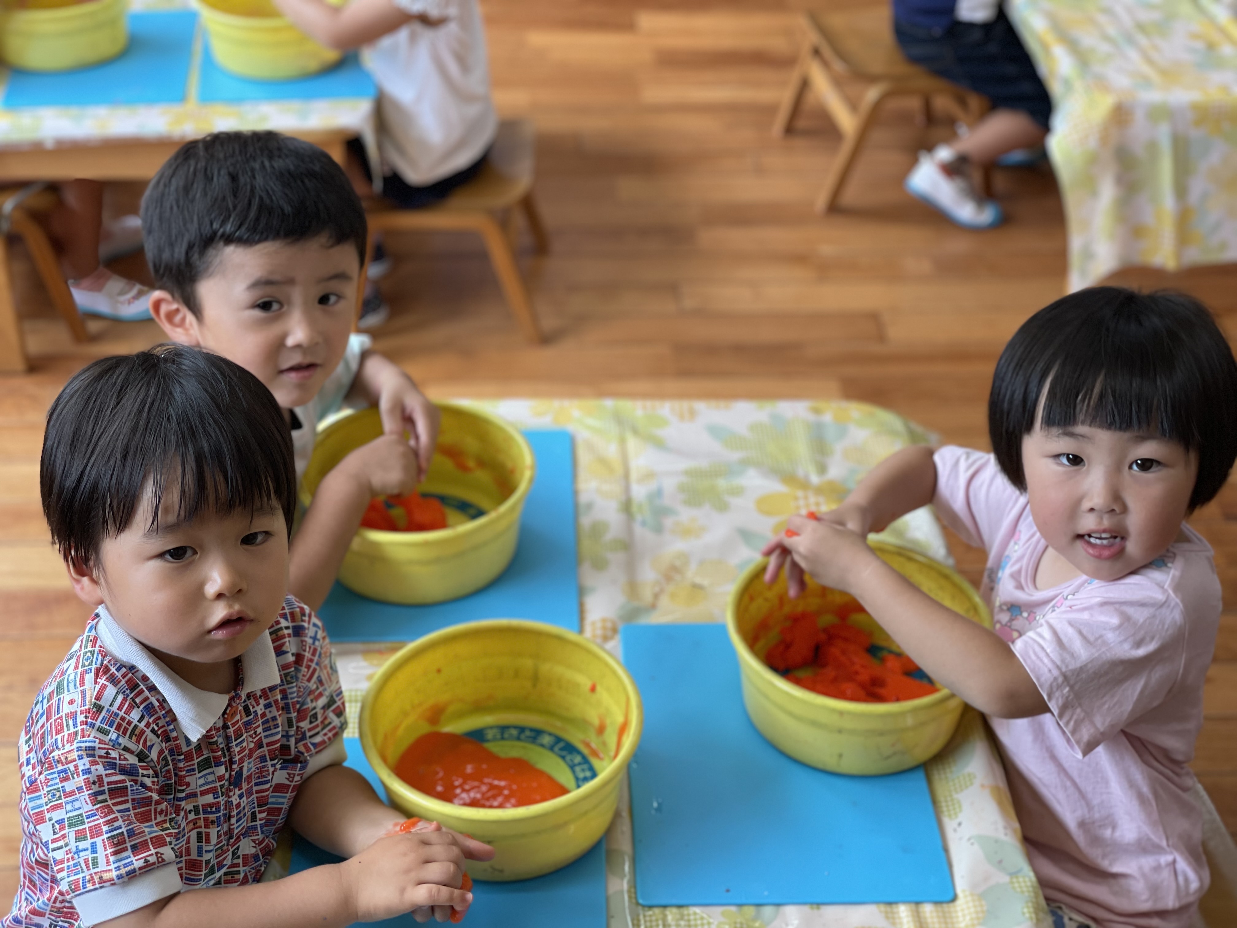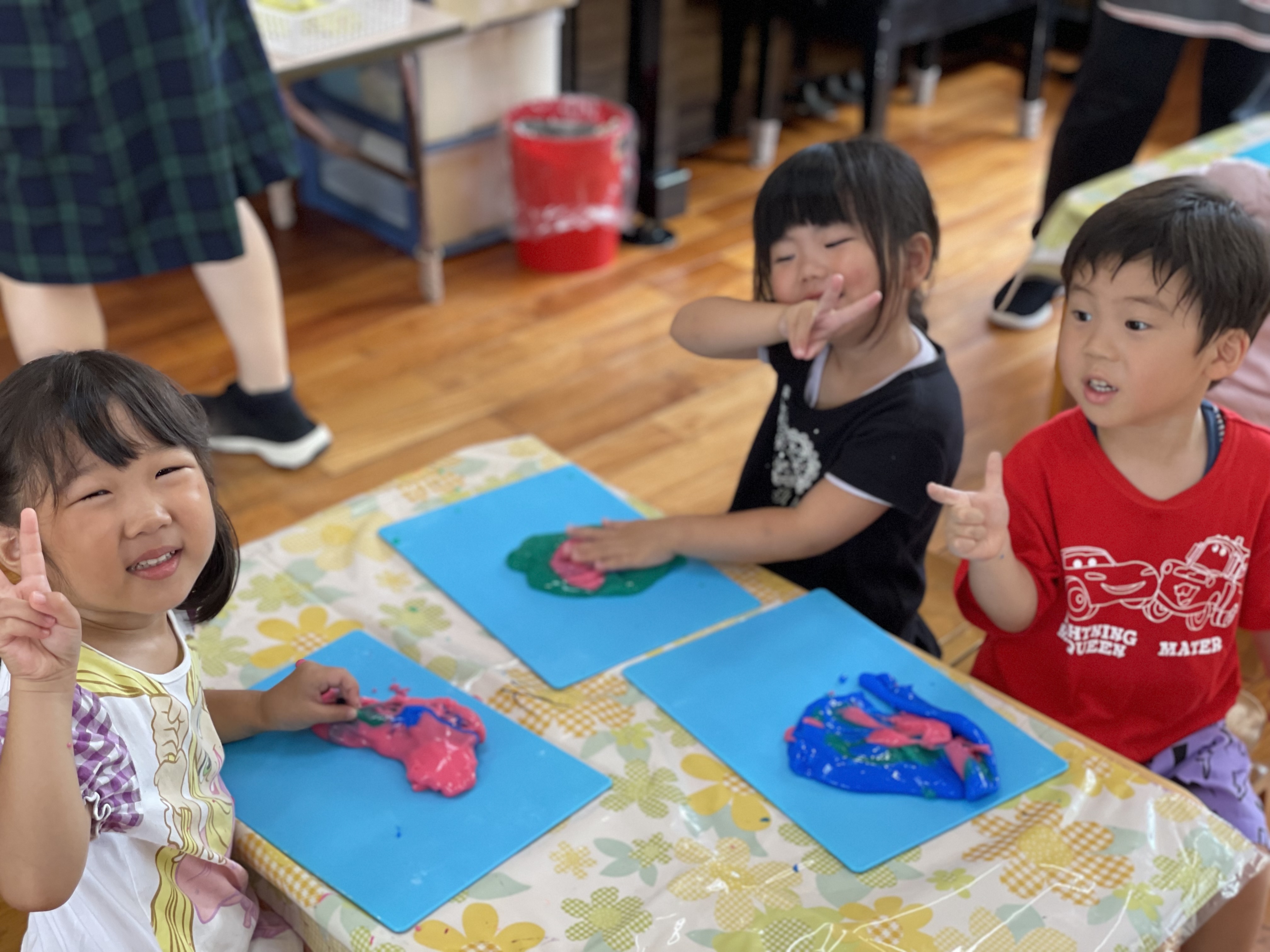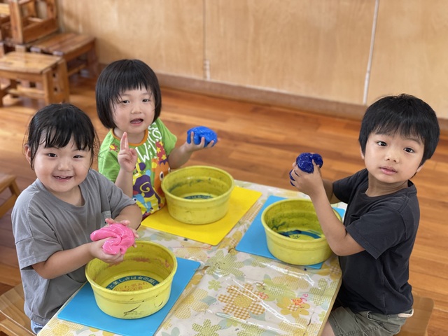 午前中はスライム製作でした。ミックスジュースの手遊びをしてスタート!!