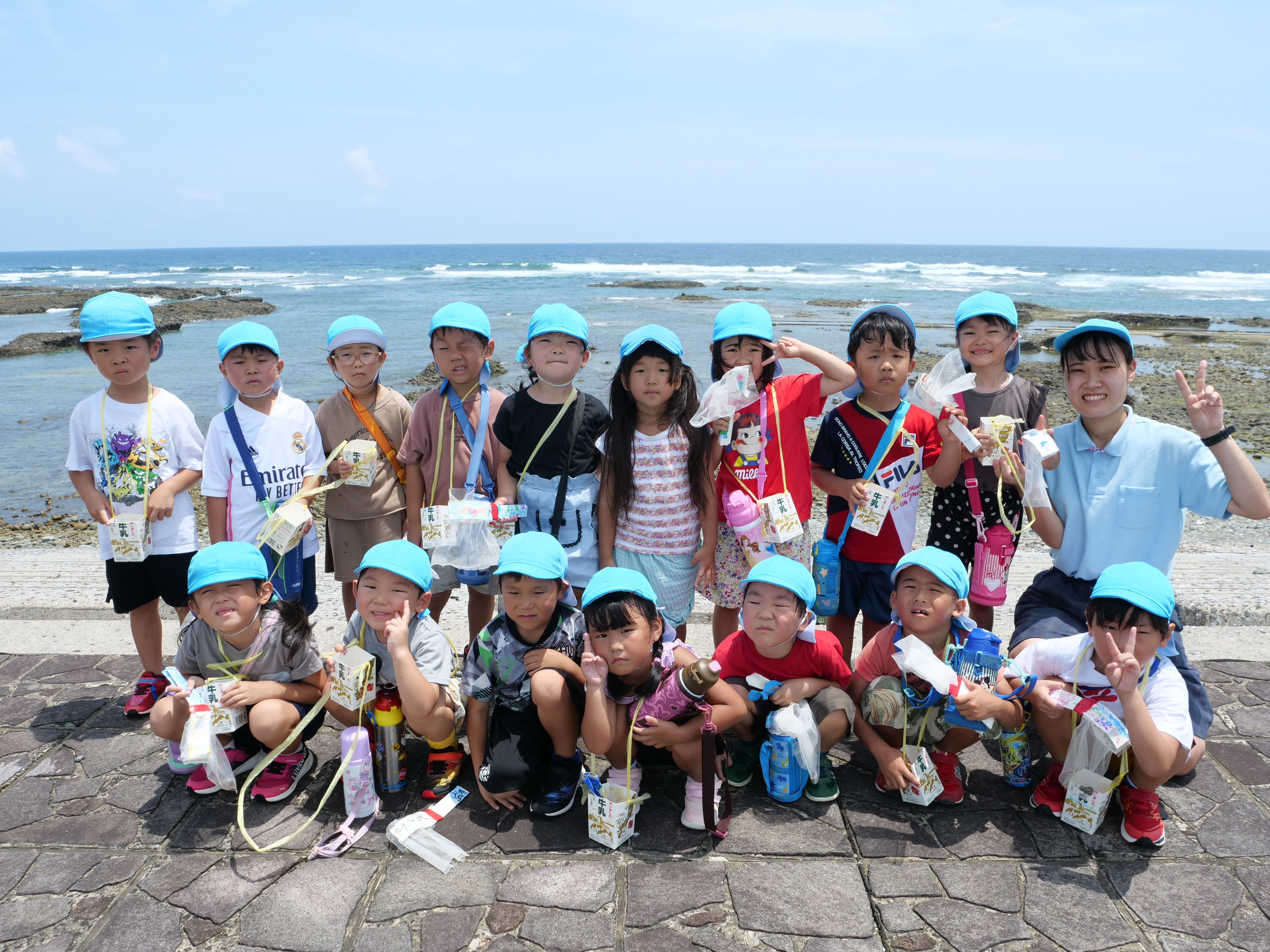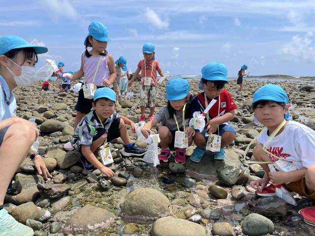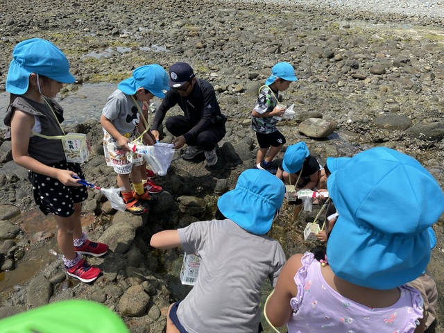海に行くグッズを作り海にも探検に出かけました。カニや魚、やどかりシーグラス等発見がいっぱい!