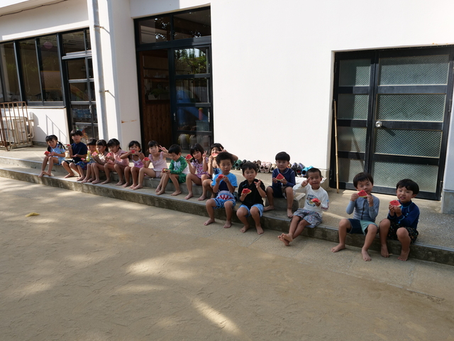 スイカ割大会にプール、美味し~いカレーライス。デザートにはかき氷!でした。