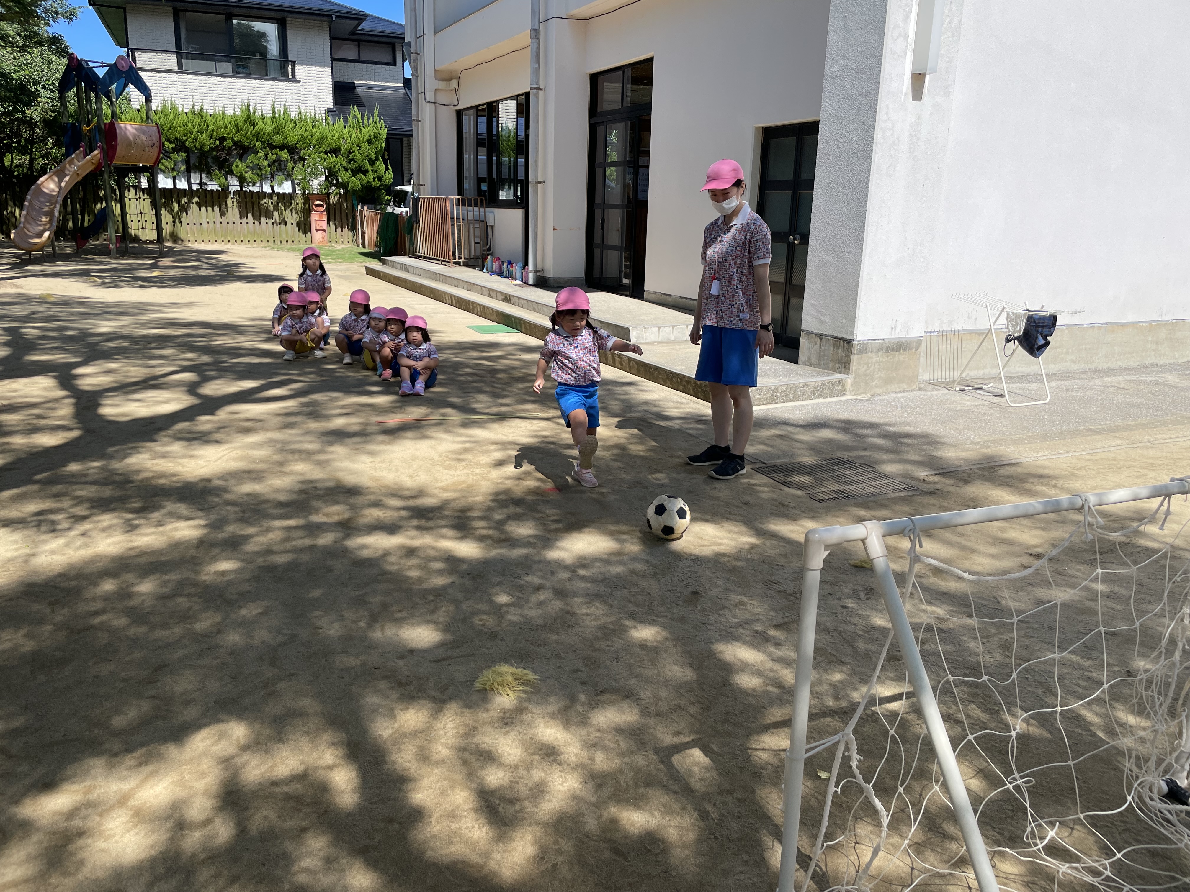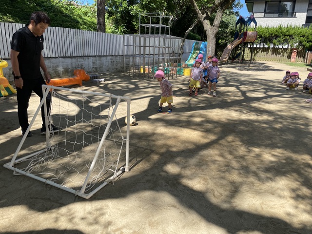 シュート練習も上手になり、しっかりゴールに向かって蹴れるようになりました。