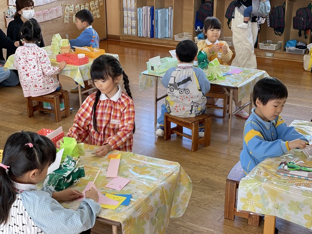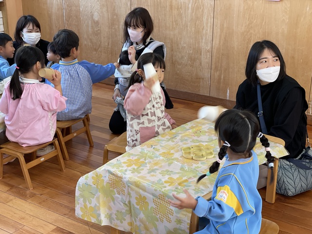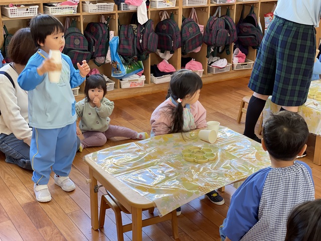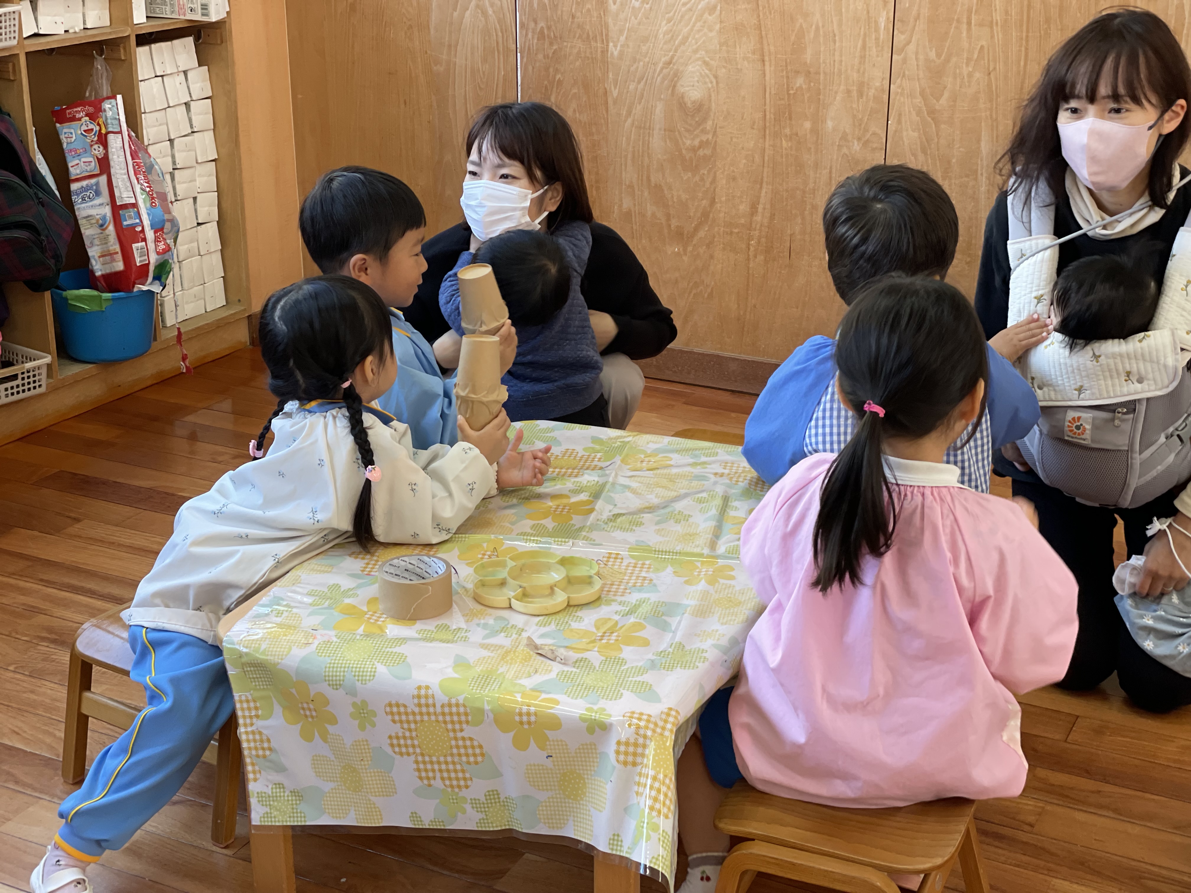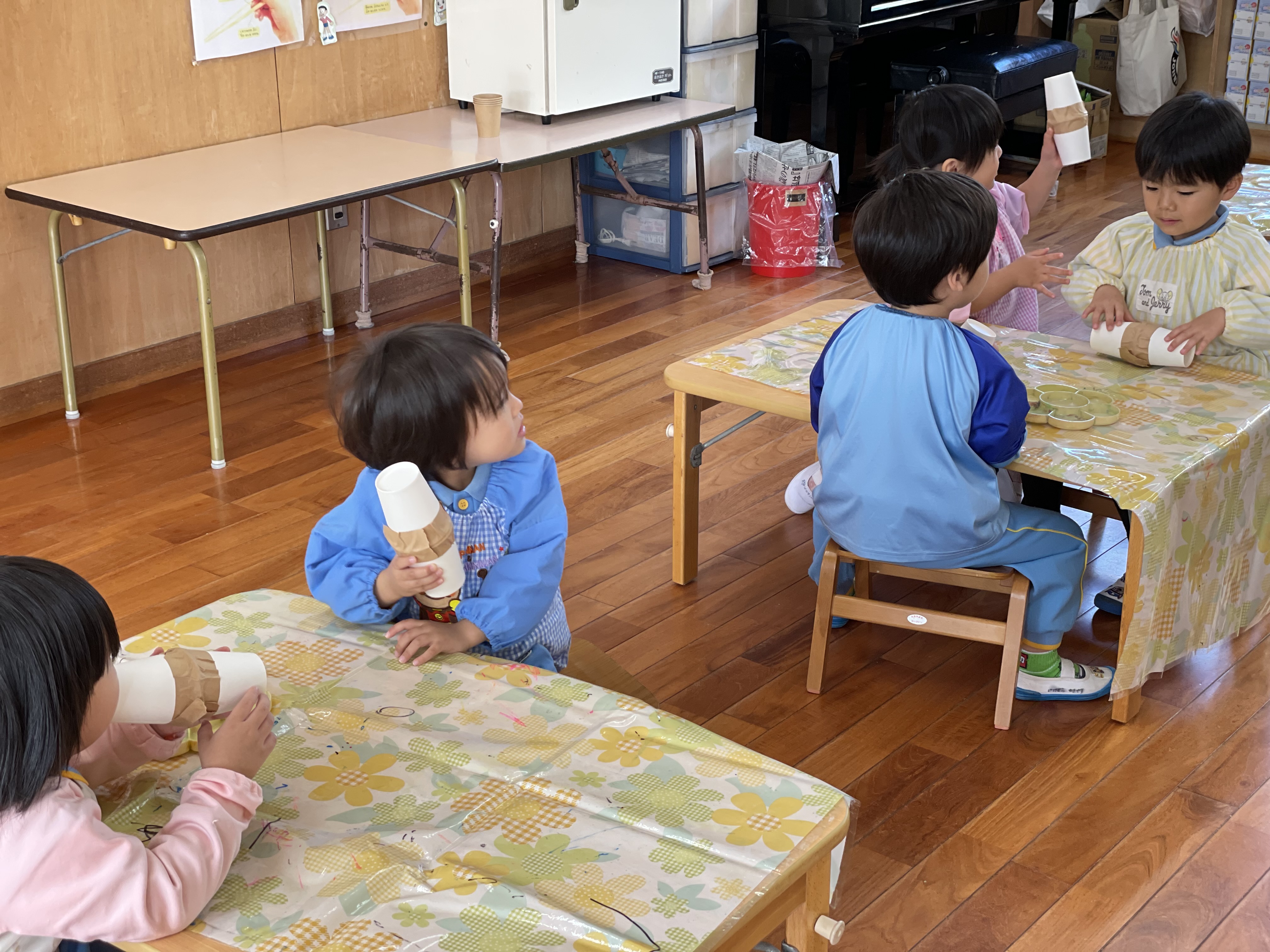 ダンボさん・・・紙コップを使ってのマラカス作りでした。中にはどんぐりを入れました。