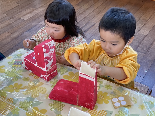 ブーツ作りを楽しみました。シール貼りにも個性がありました。