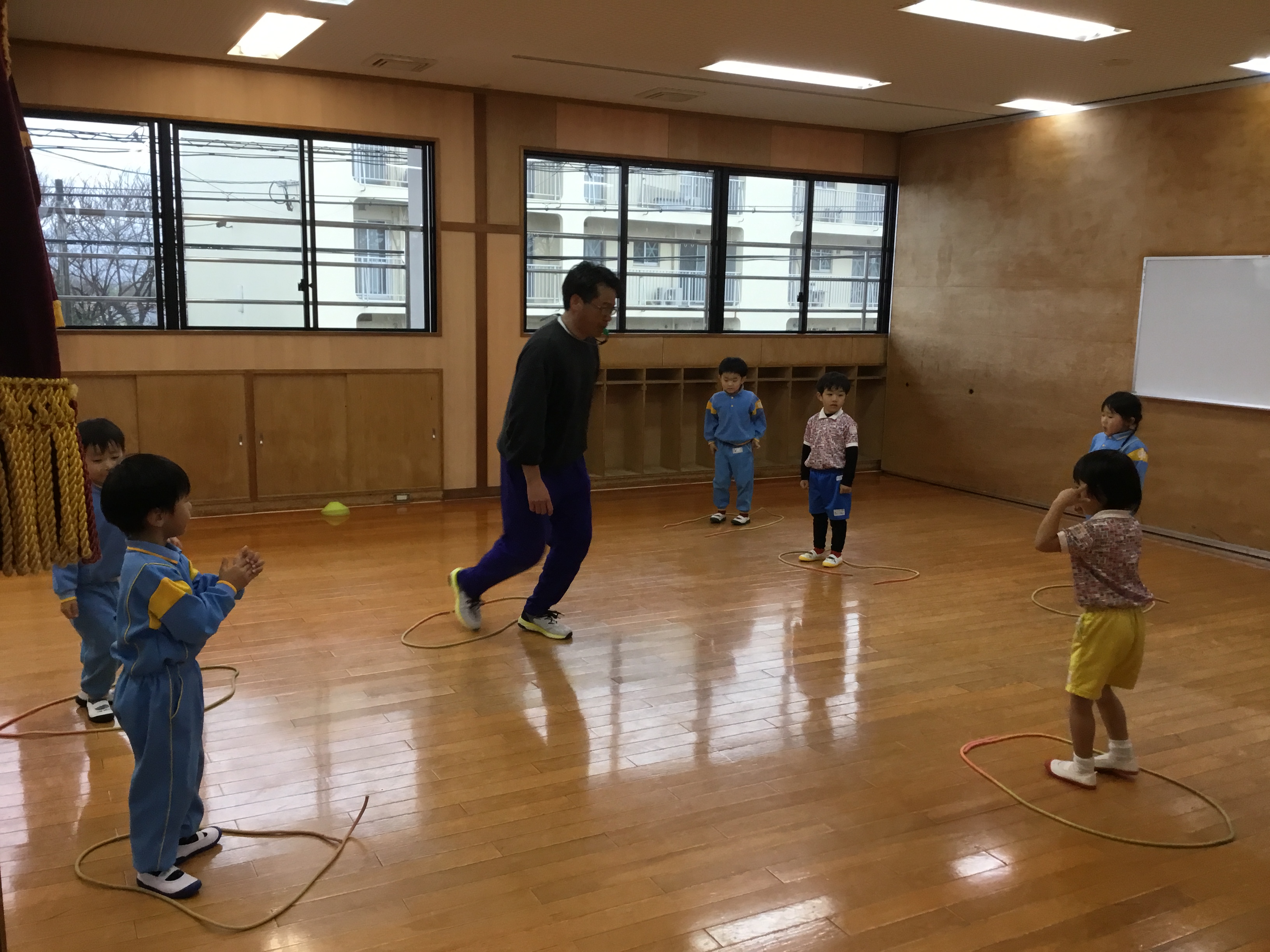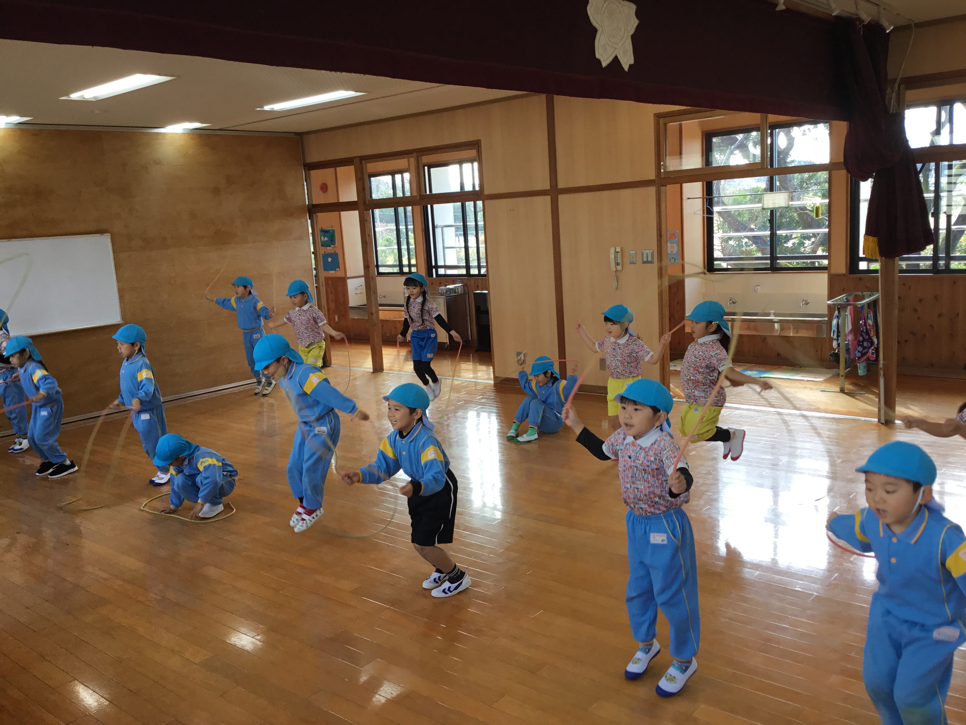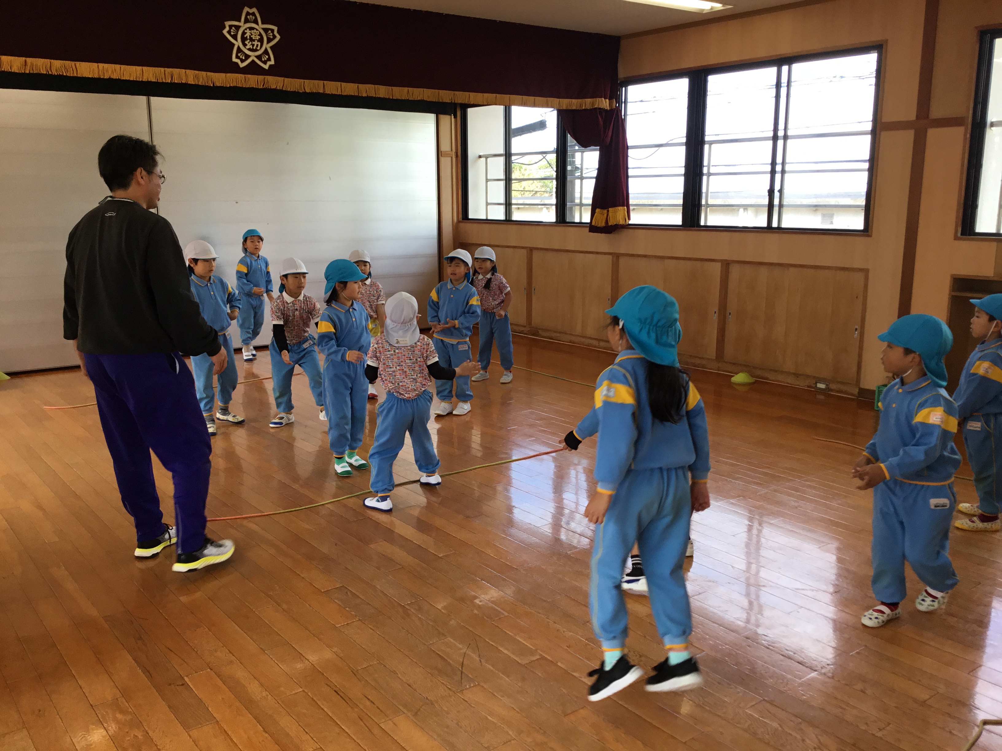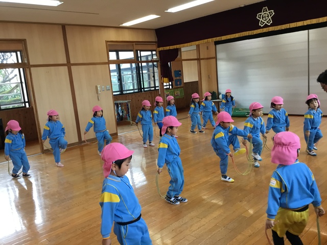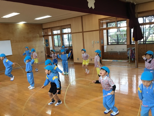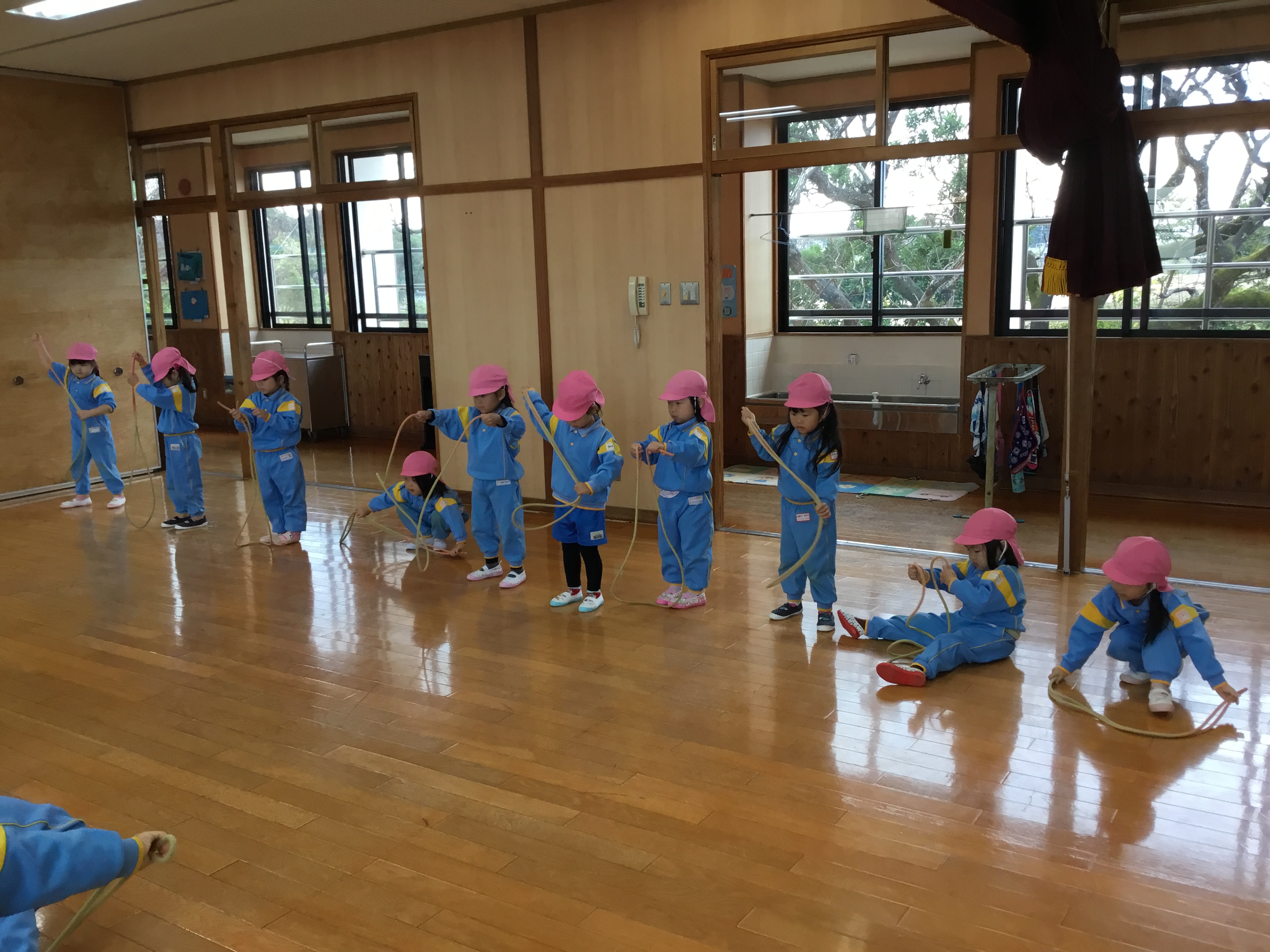 なわの持ち方「パンツはいて~シャツ脱いで~」と言いながらのなわ回し。
