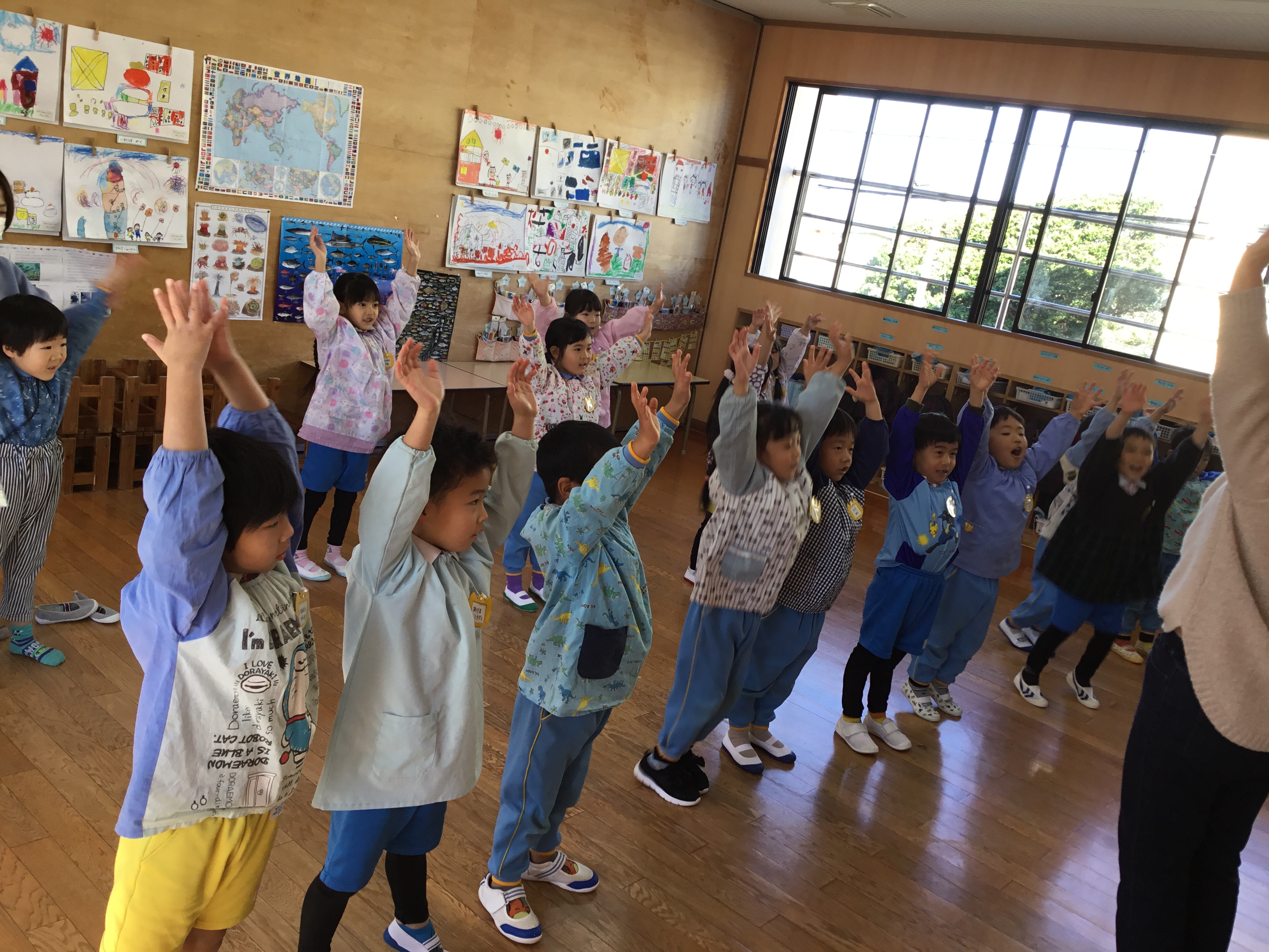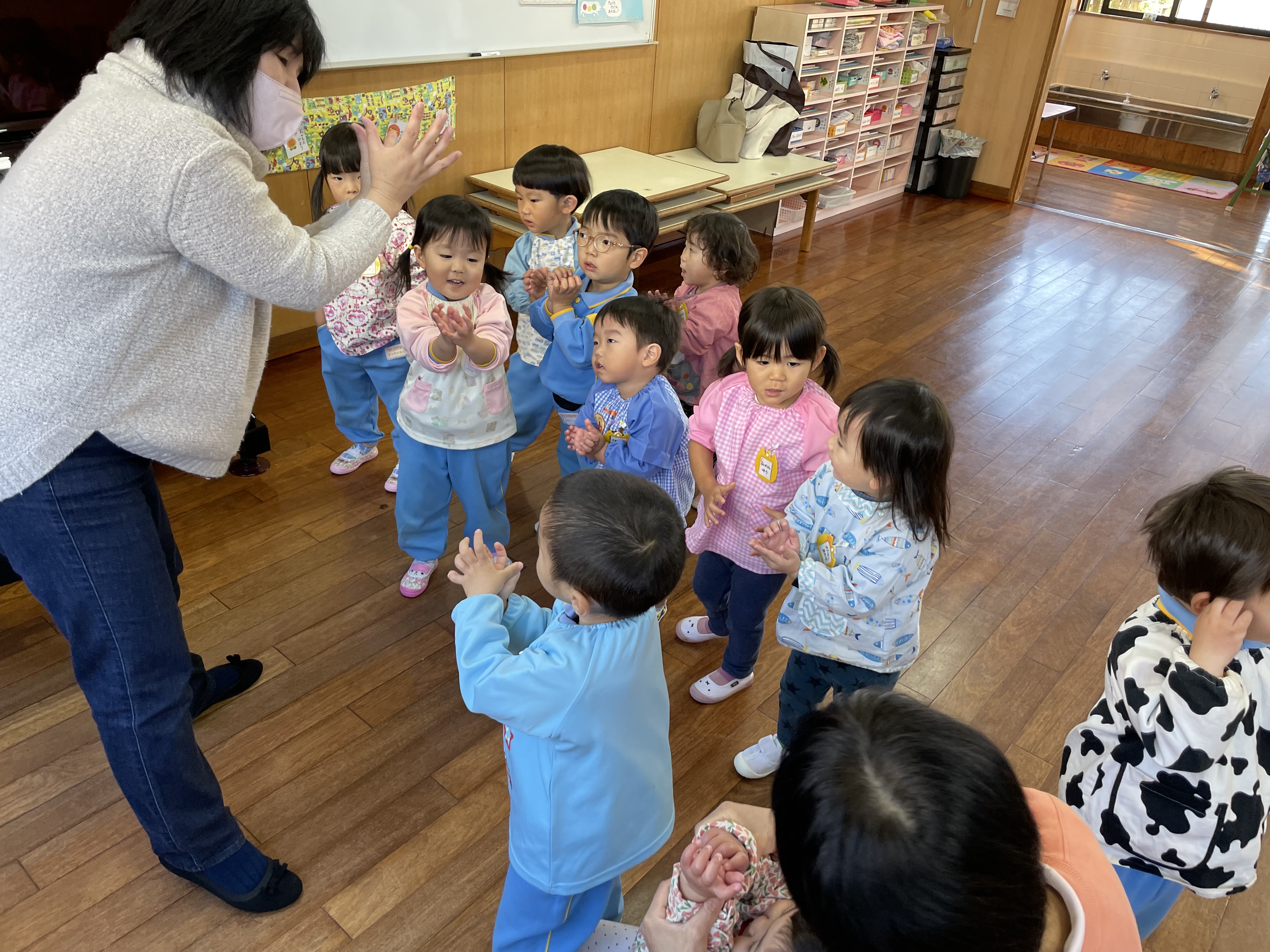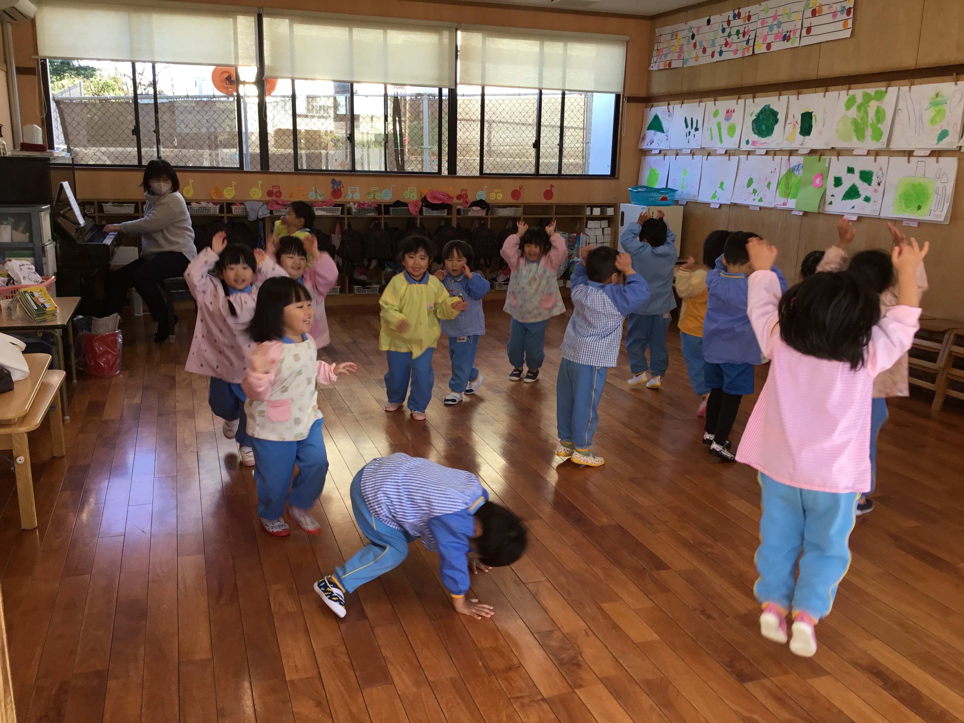 バンビさんは動物に変身して沢山身体を動かしました。お花を手で作って「お花が笑った」を歌いました。