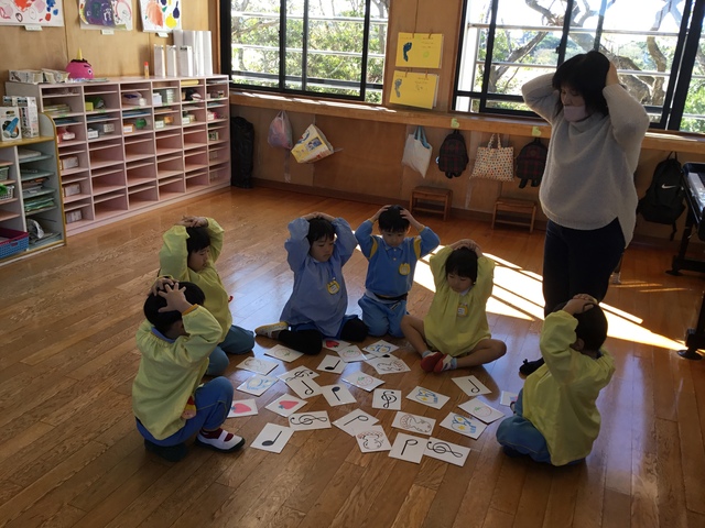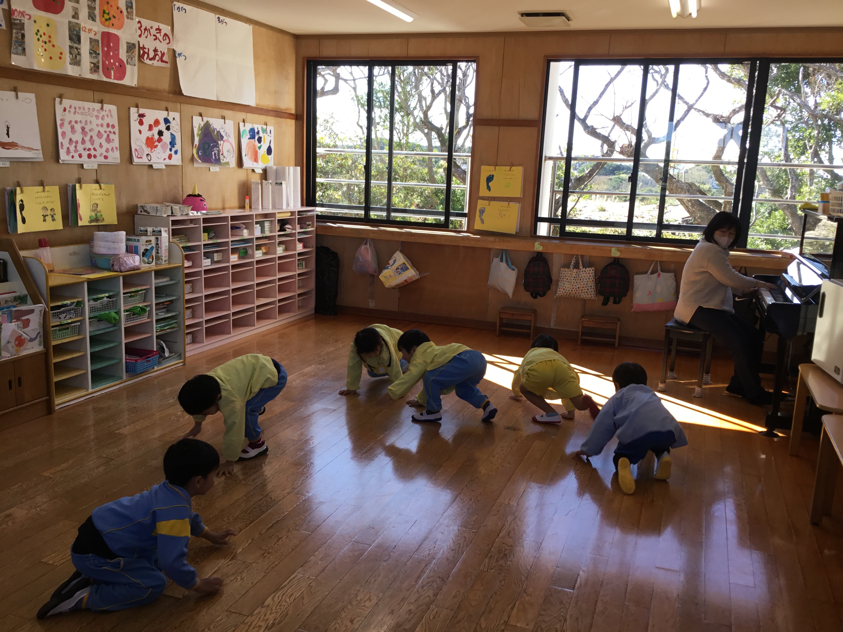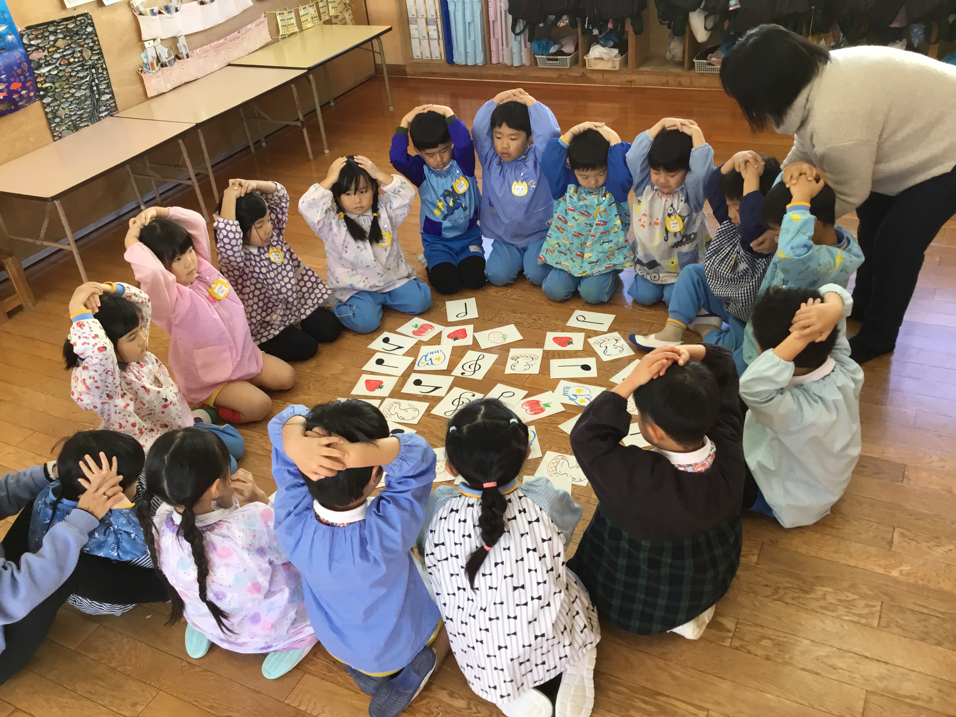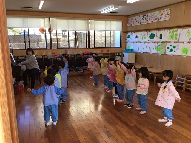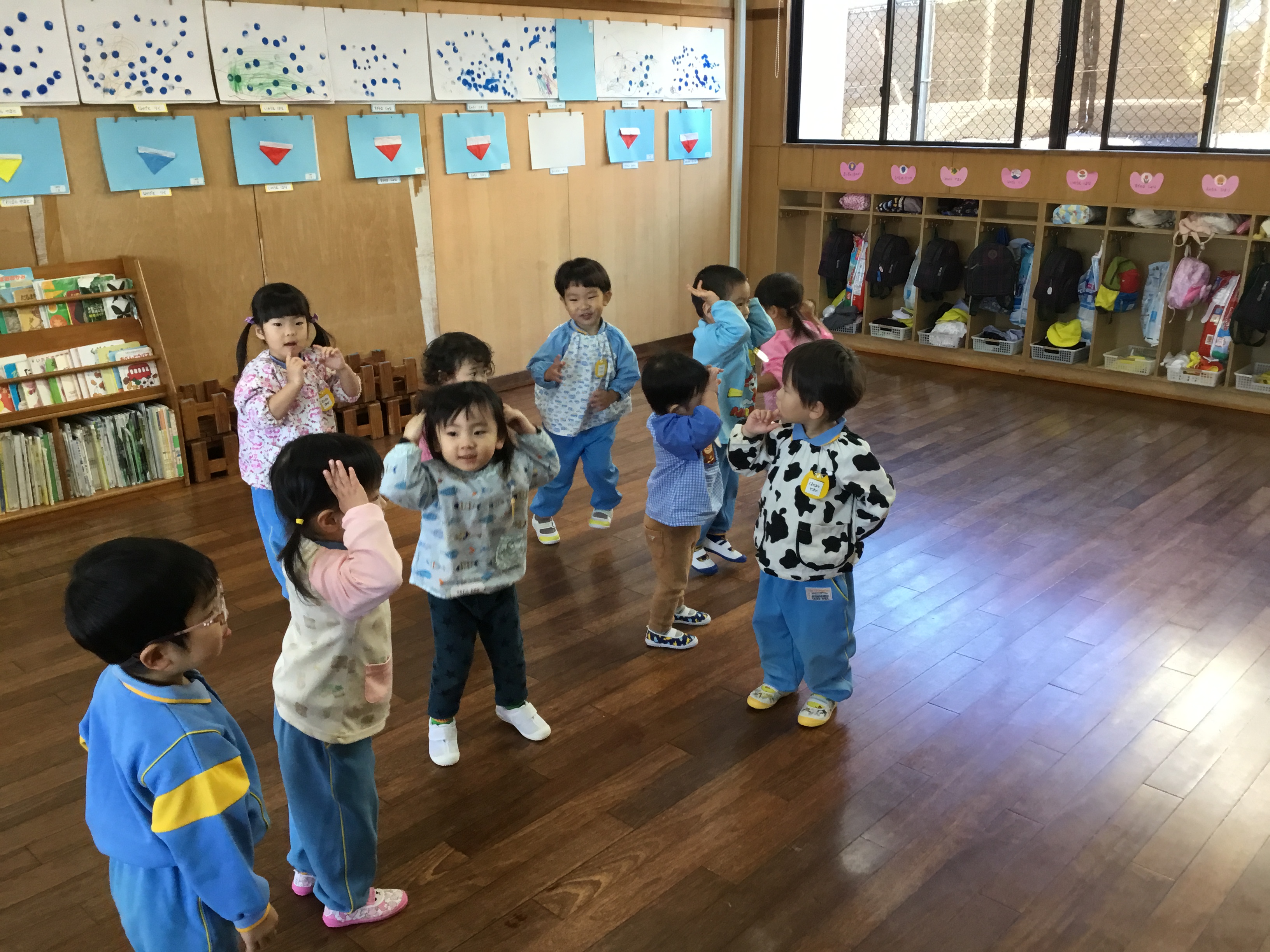 バンビさんは動物に変身して沢山身体を動かしました。お花を手で作って「お花が笑った」を歌いました。