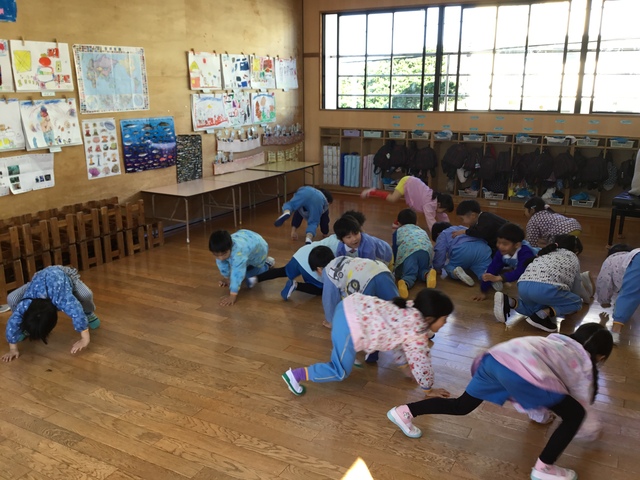 アラジンさんでは体操をしたり動物に変身して表現遊びをしたりしました。