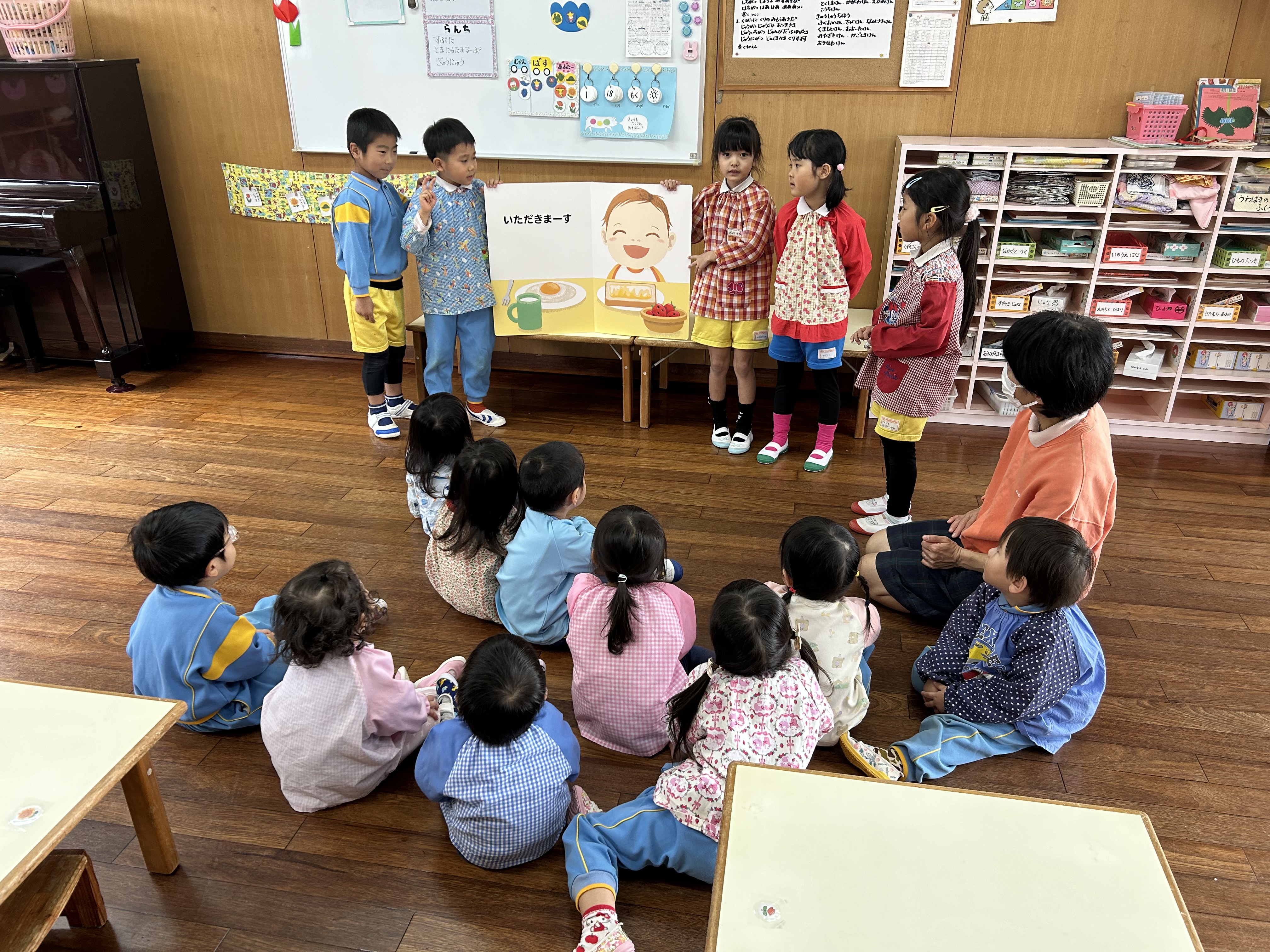 最後に年長さんから大型絵本の読み聞かせ。