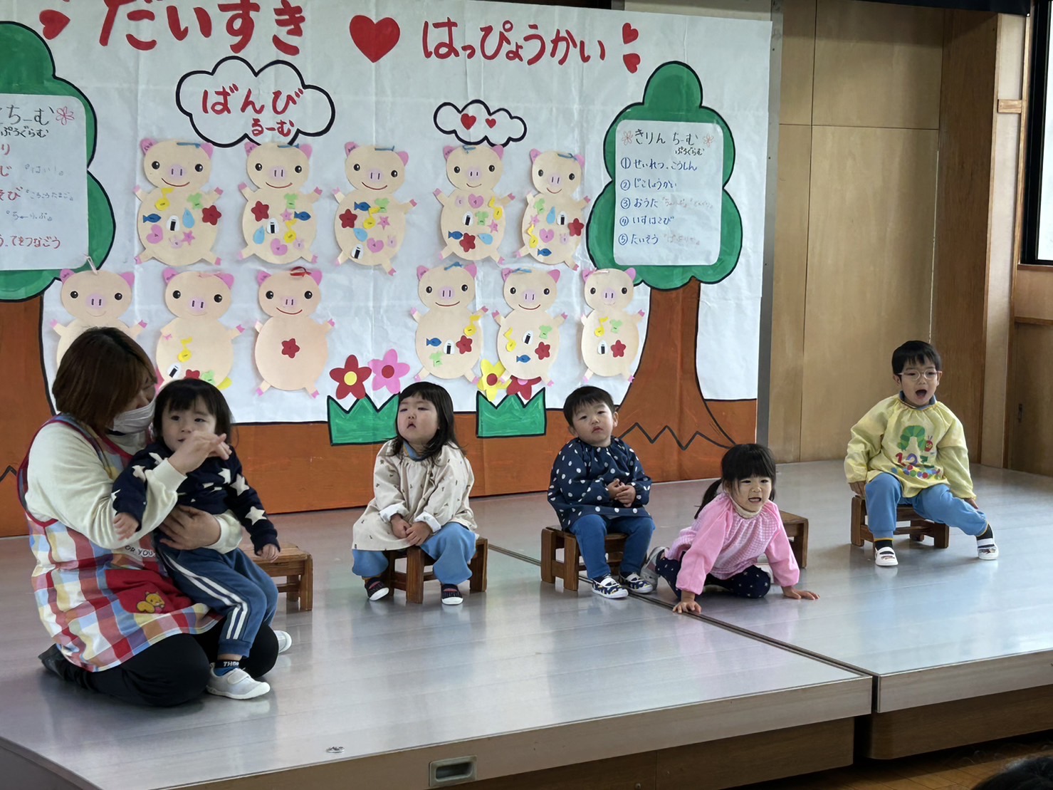 2歳児チームも裏でしっかり歌ってました♬