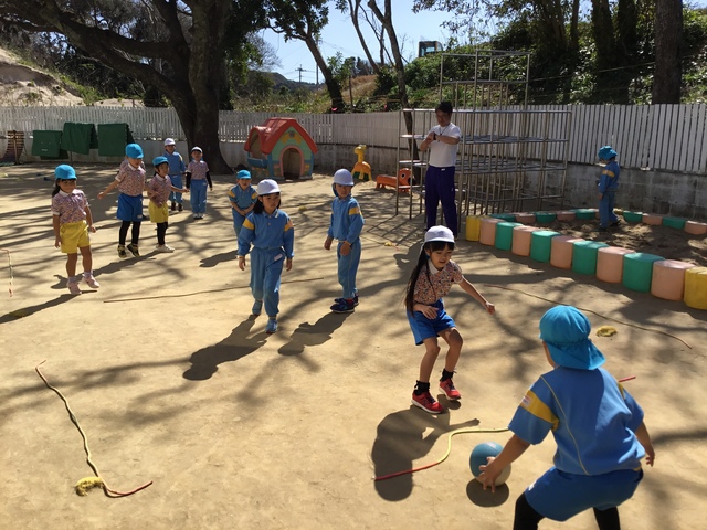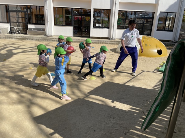 今日は春の風が吹く一日でした。園庭で沢山スポーツタイムを楽しみました。