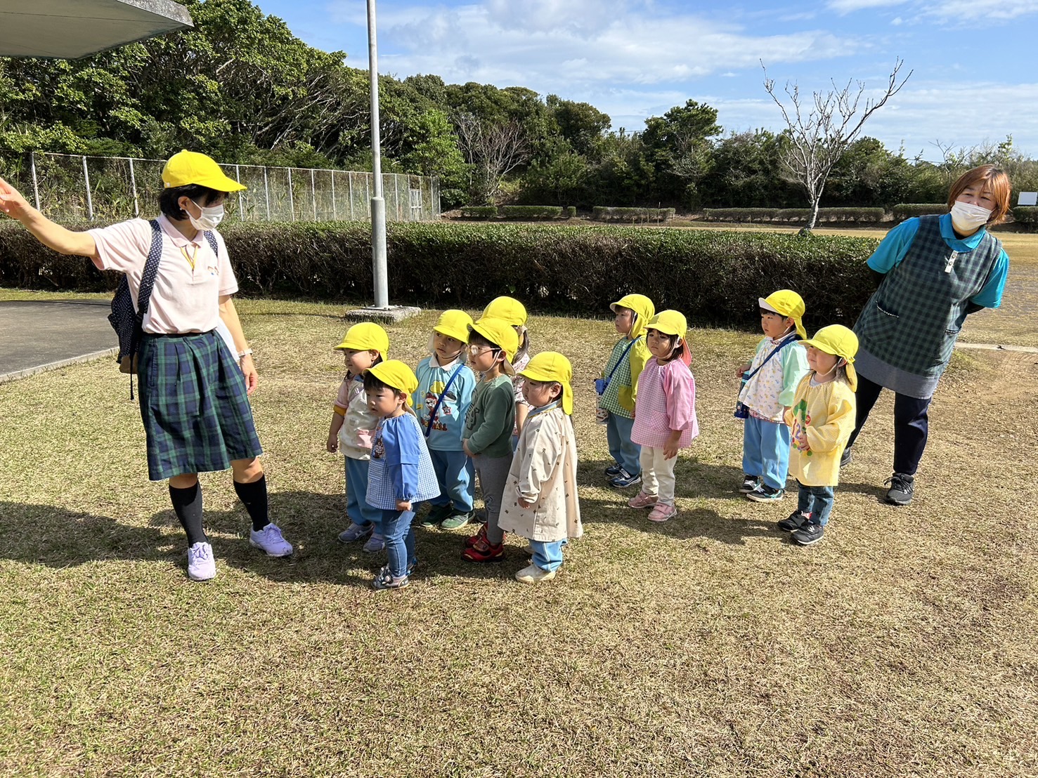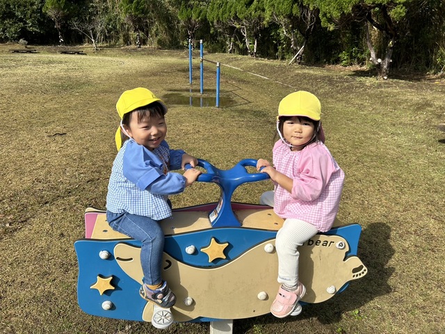 バスに乗ってウキウキ!お散歩して遊具でも遊べましたよ。