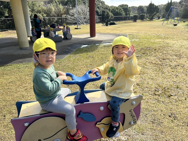 すべり台もすべって、ルンルンでしたね。桜のつぼみもあったようです。