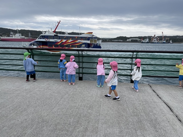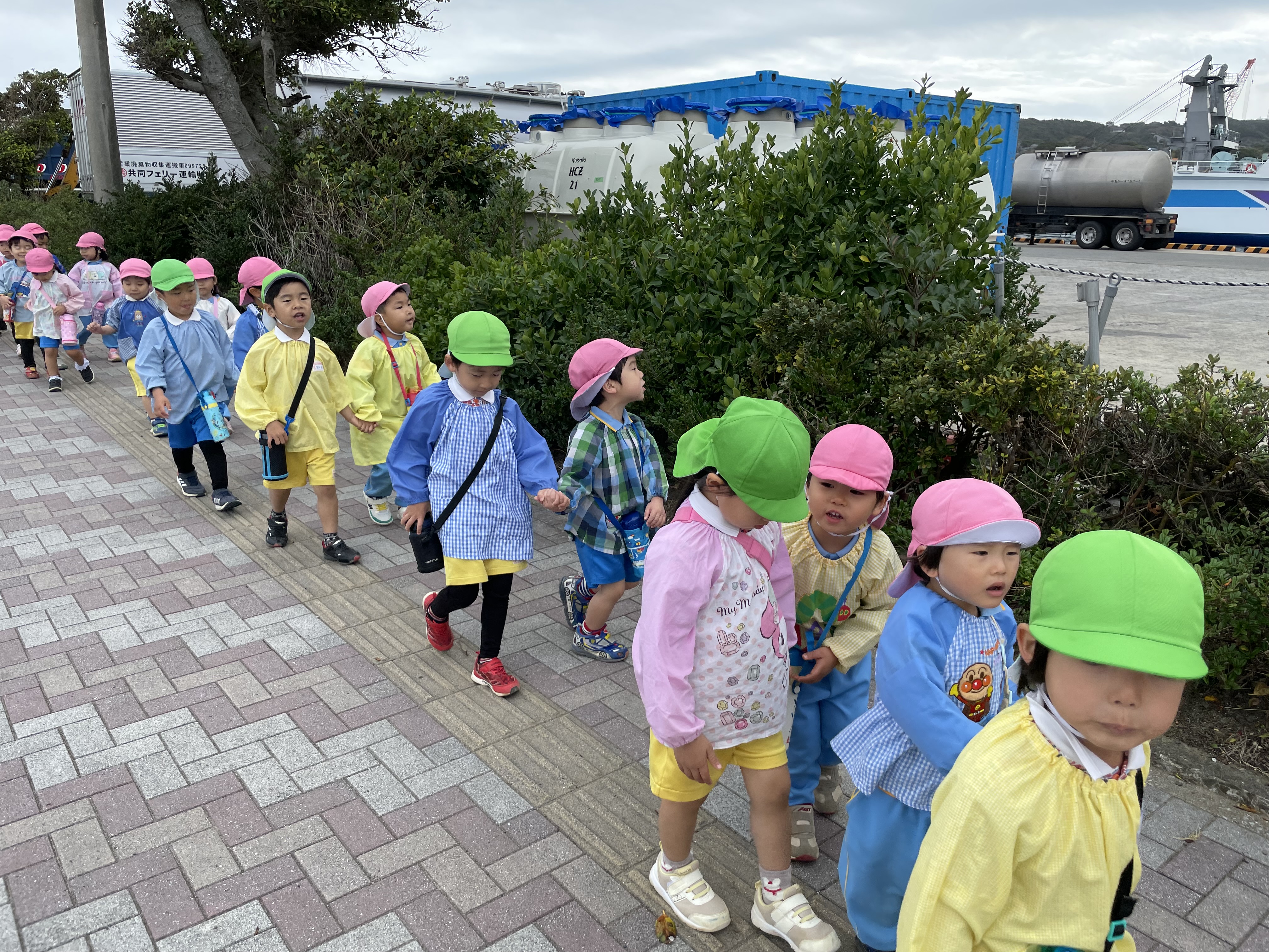 途中桜を眺めたり、学校を見たりフェリーに手を振りながら歩きました。