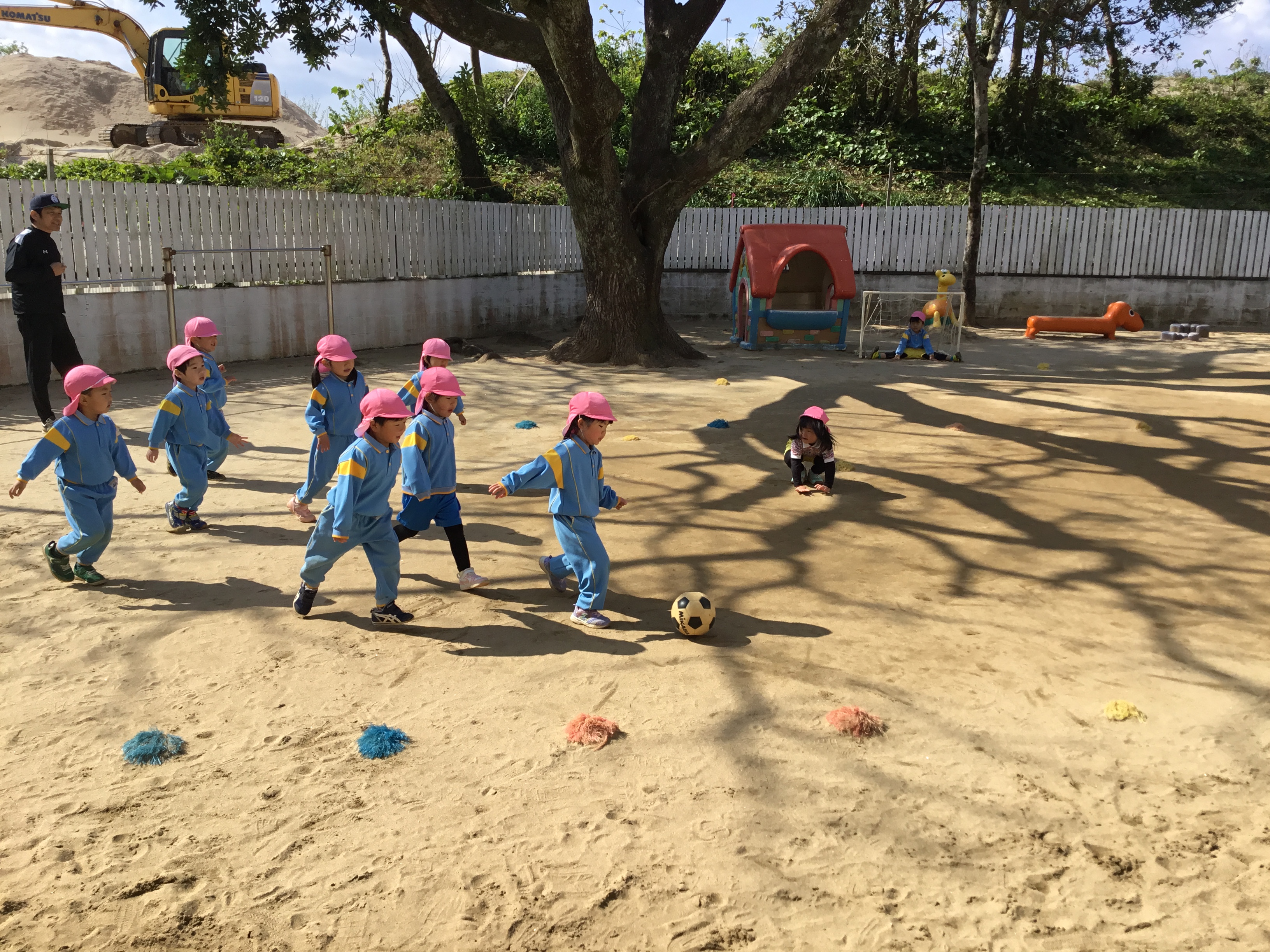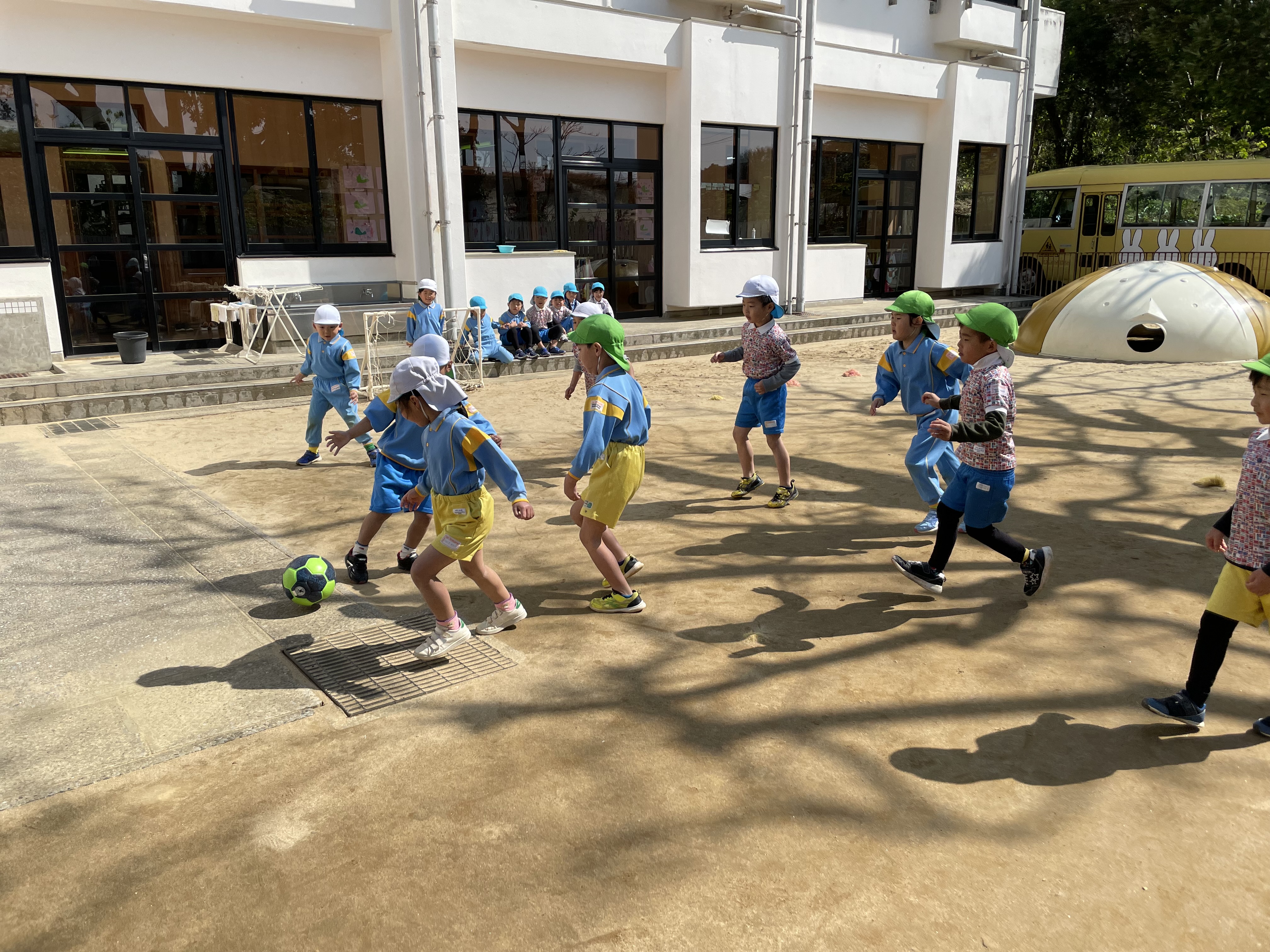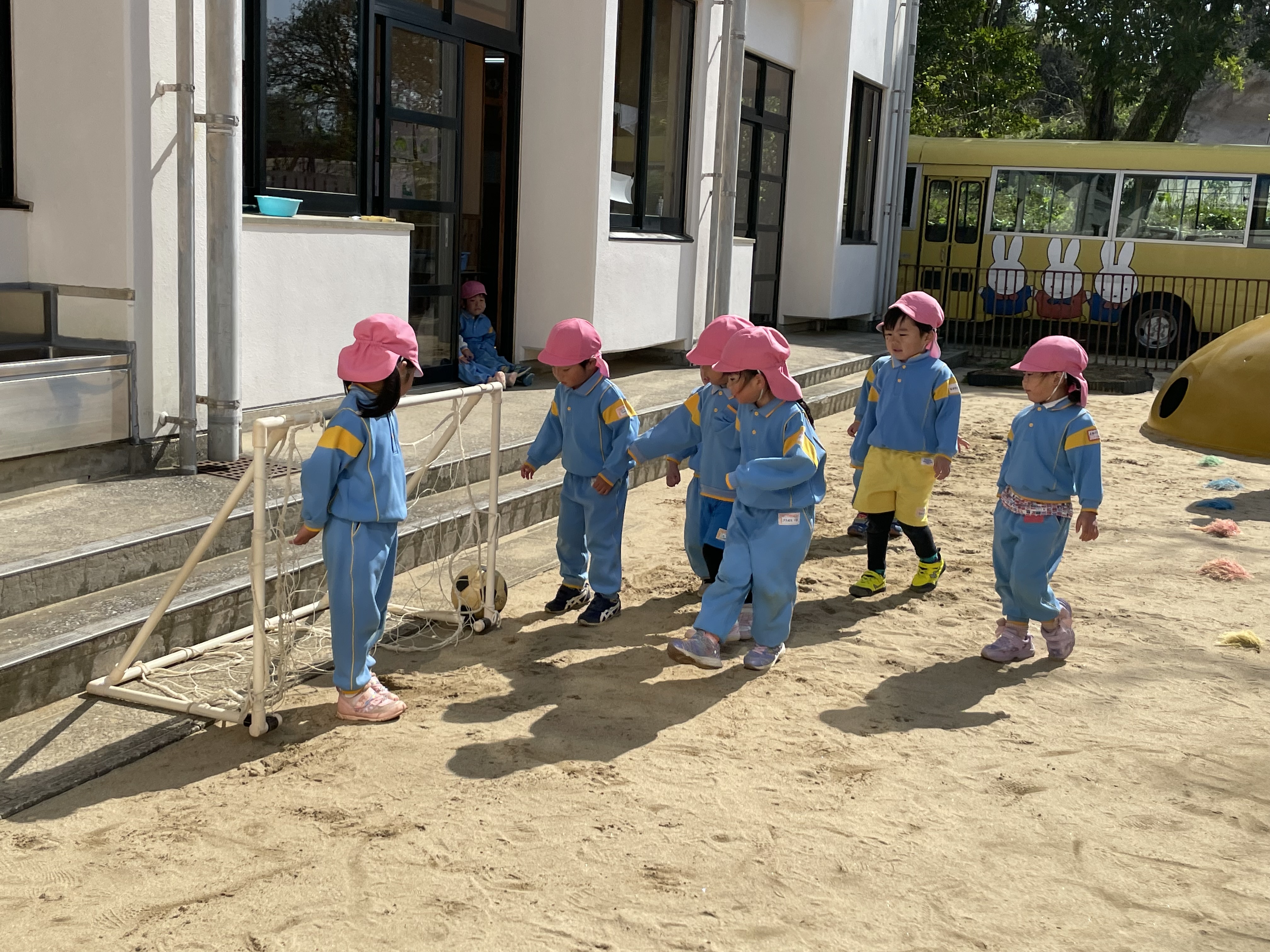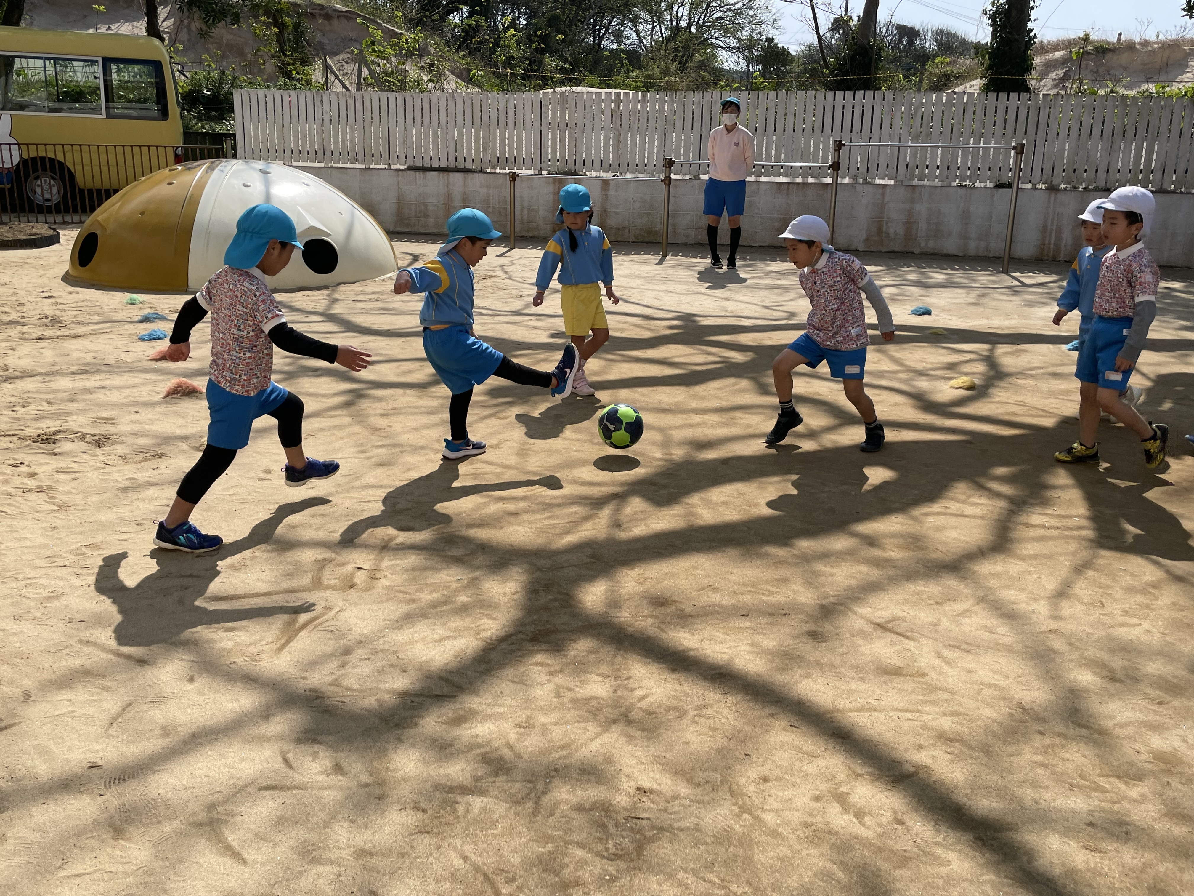 体操、かけっこ、シュート練習 ゴールに向かう姿も頼もしくなってきました。