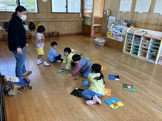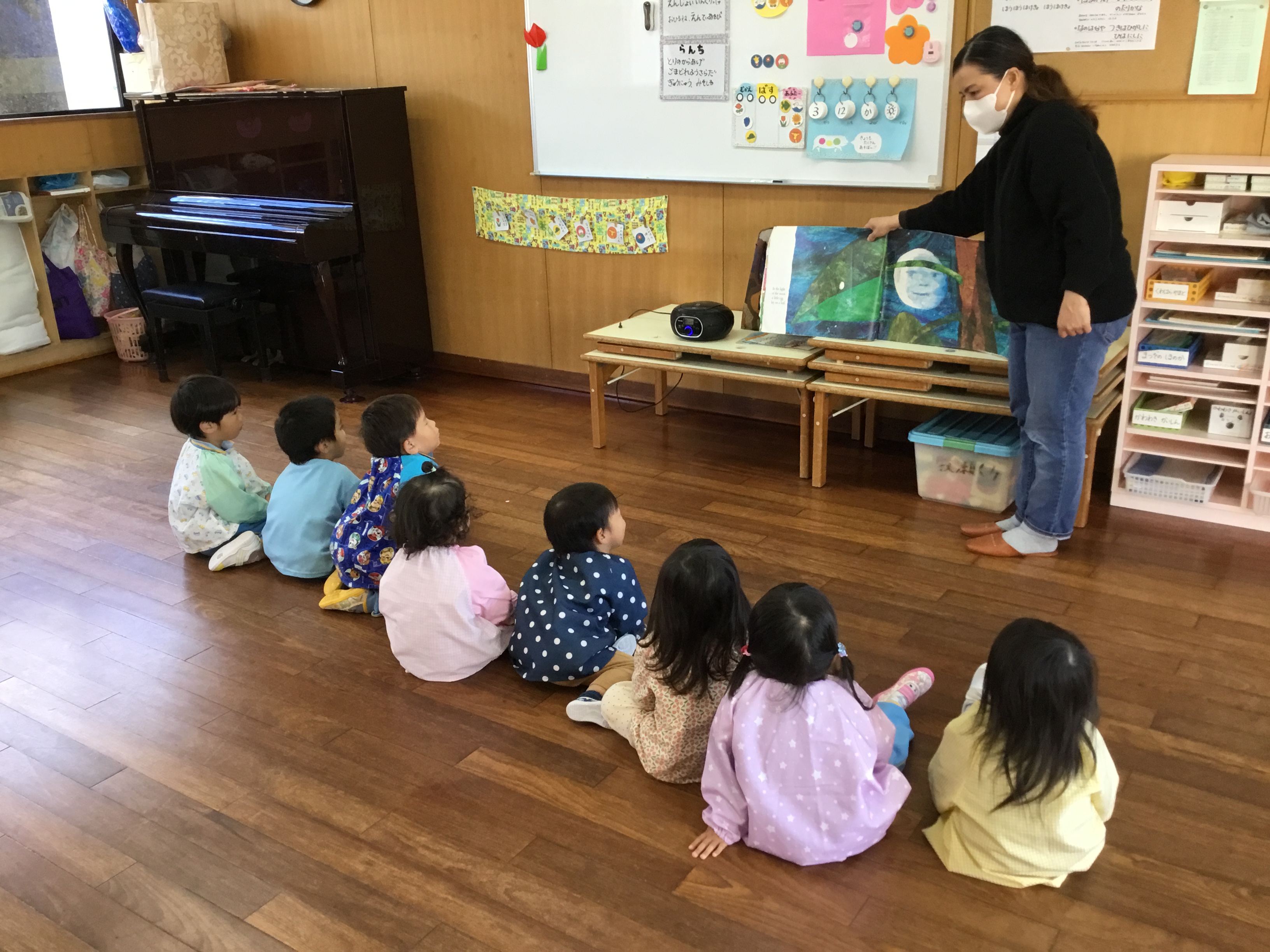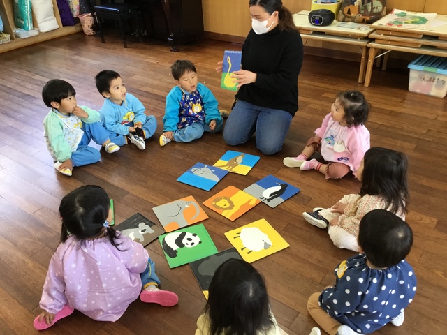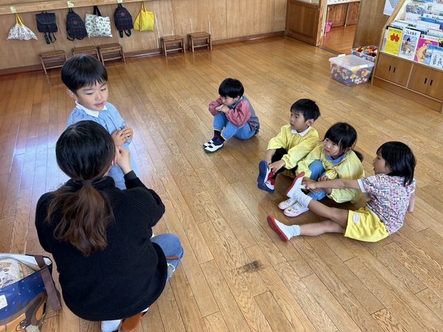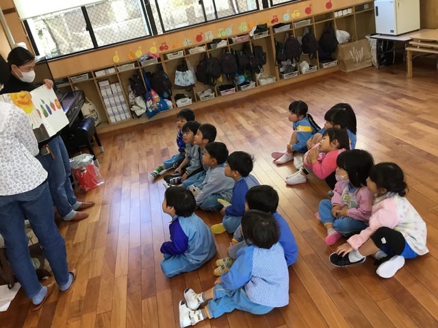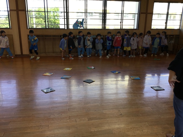 大型絵本では「はらぺこあおむし」も静かに見る事ができました。