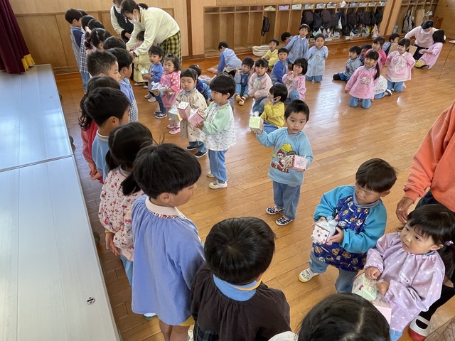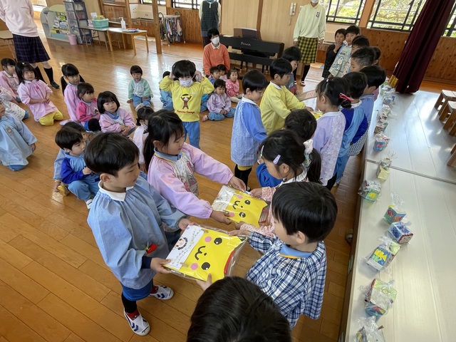 お子様方が作った手作りのプレゼンの交換もできましたよ。