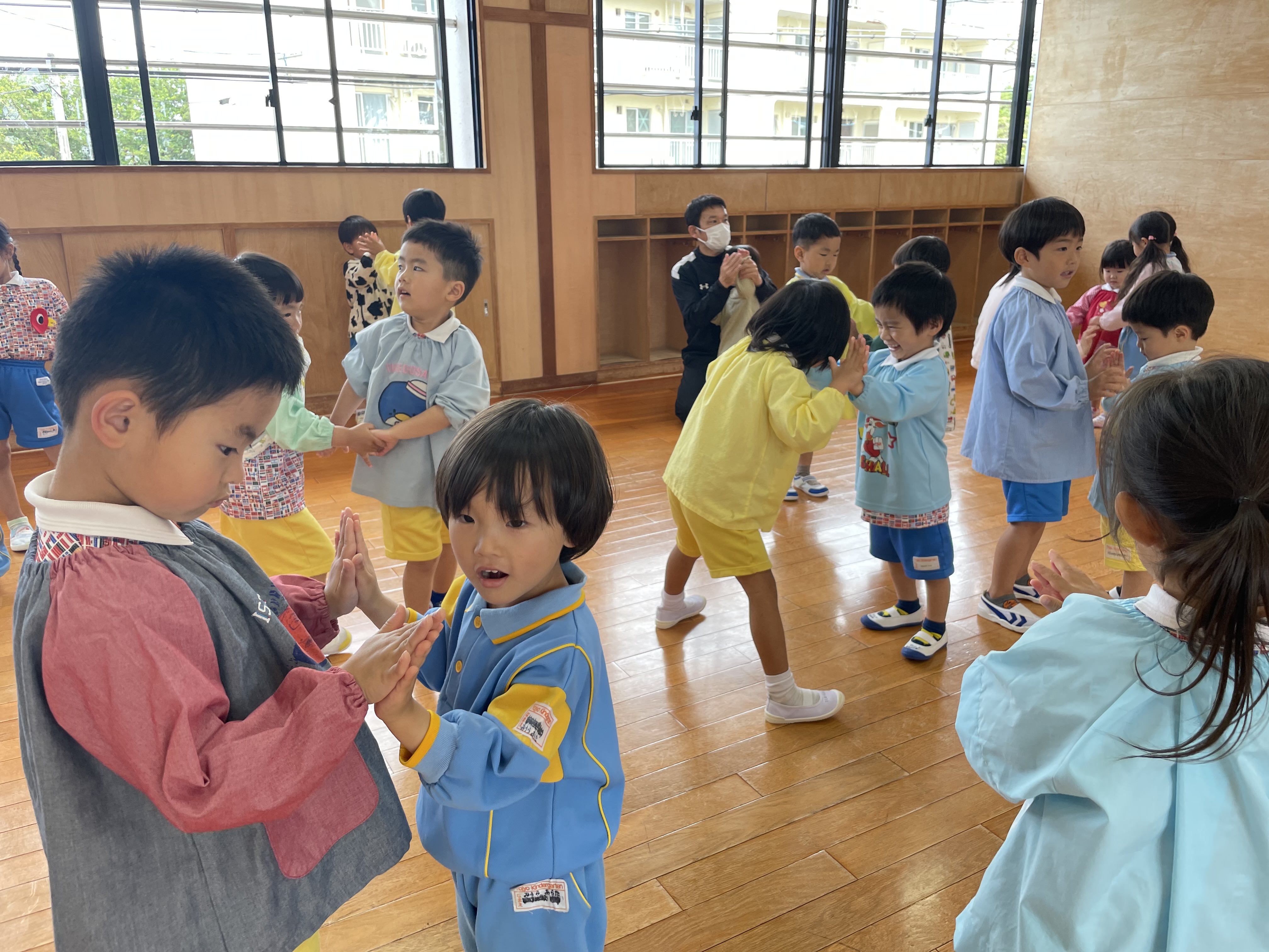 ○スキンシップゲームでは、異年齢のお友達同士でタッチゲームを楽しみました。