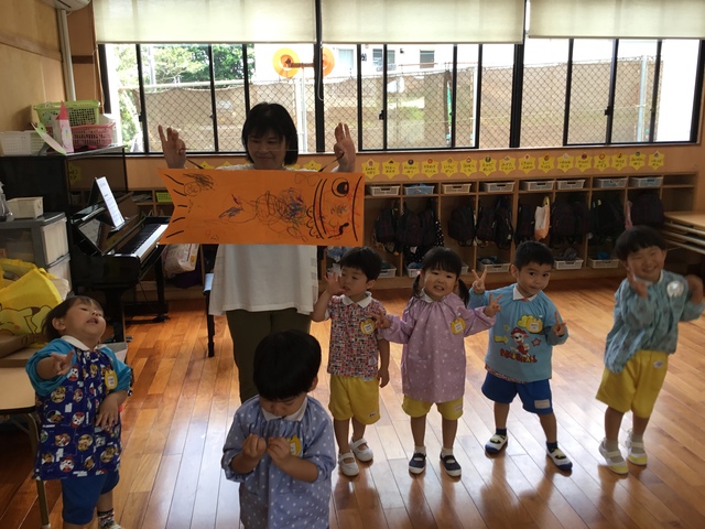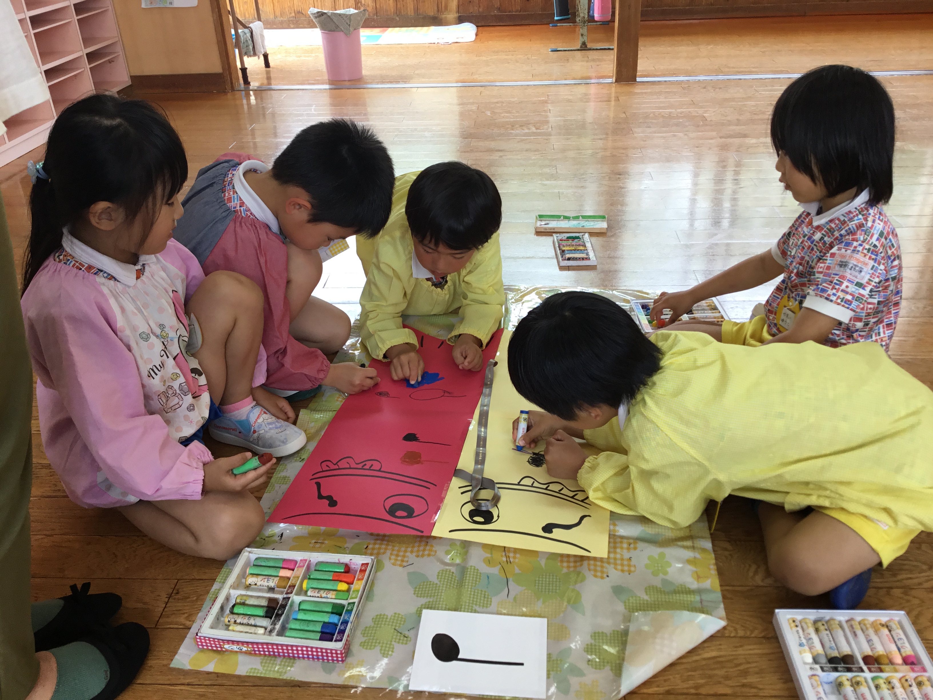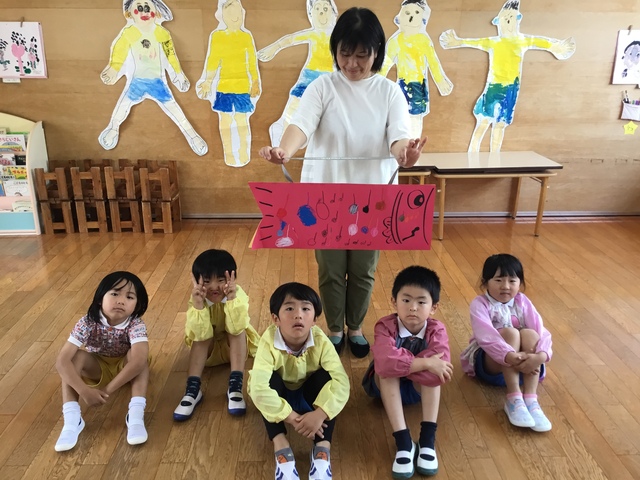 こいのぼりにおえかきをして、こいのぼりの歌も元気に歌いました。