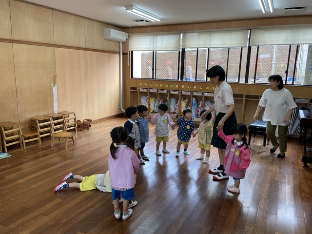 バンビちゃんは歌に合わせて体を動かしたり、バンビちゃんのリトミックソングを