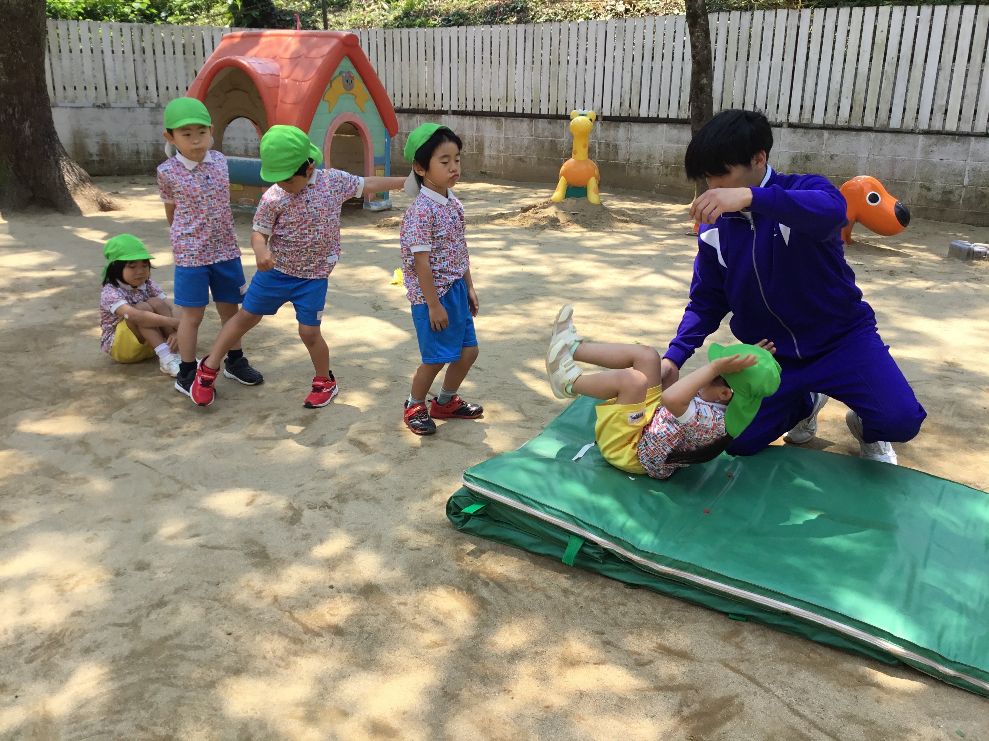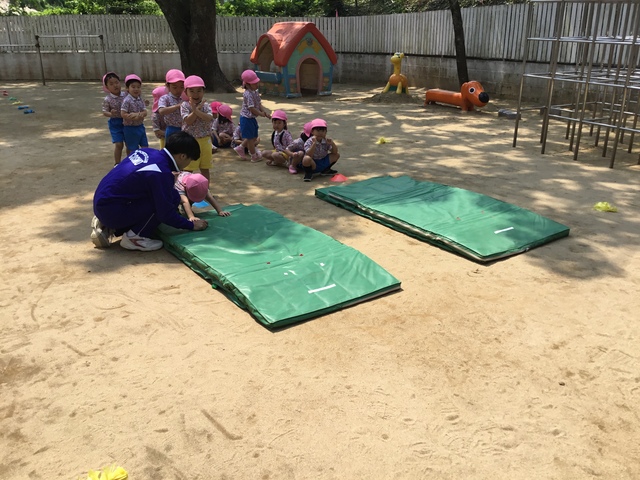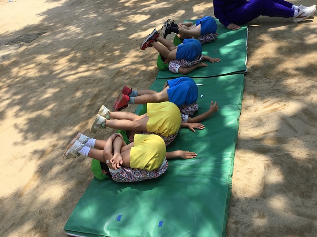 アラジン・・・準備体操もばっちり。マット運動では前転をがんばりました。