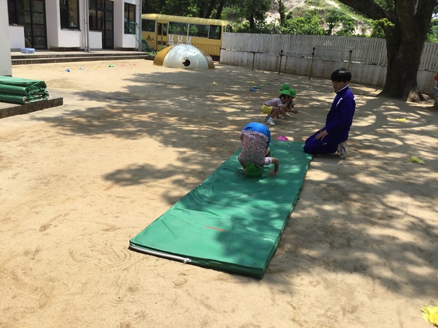ピーターパン・・・初めて後転に挑戦しました。手の場所を確認して、