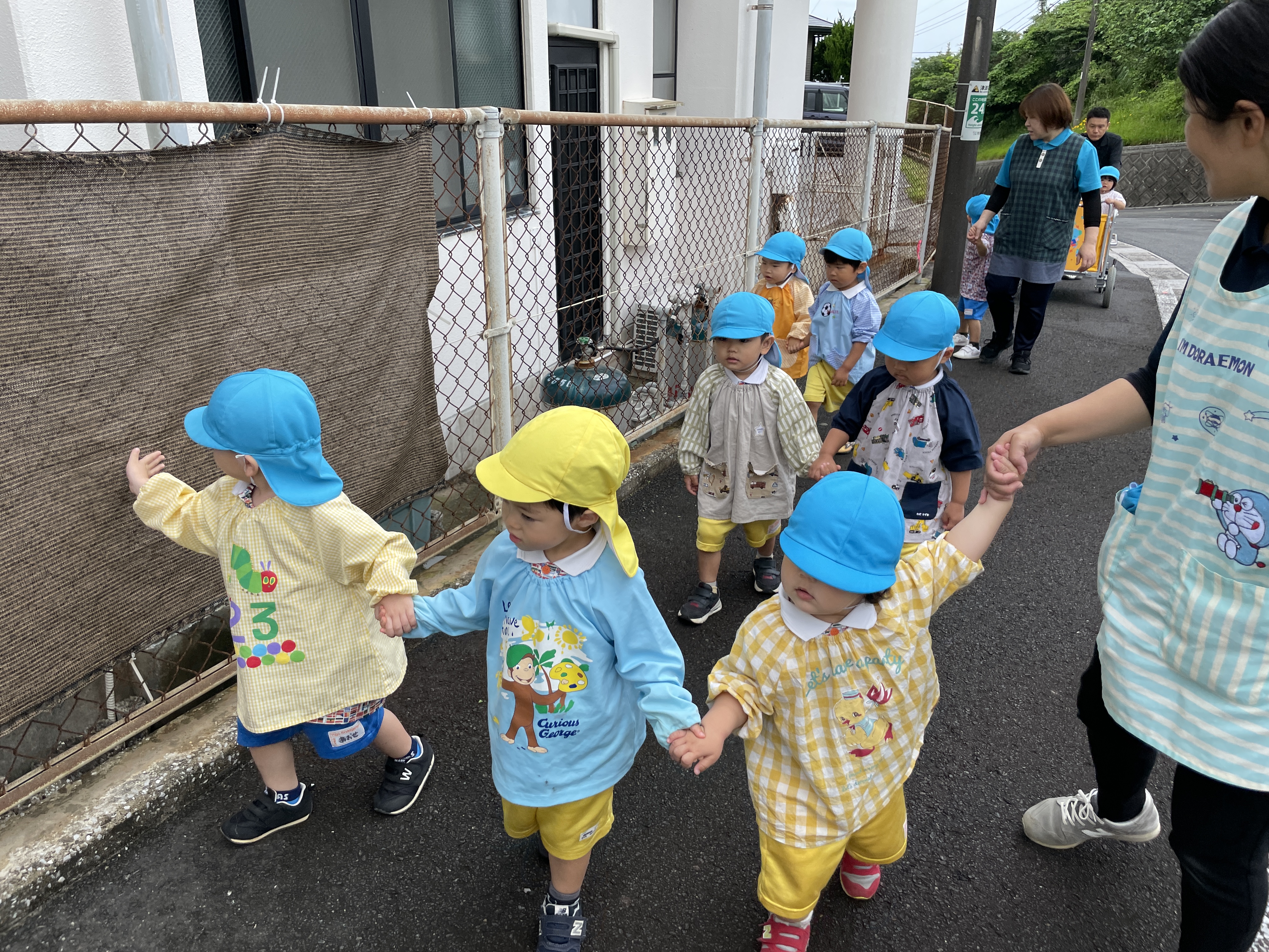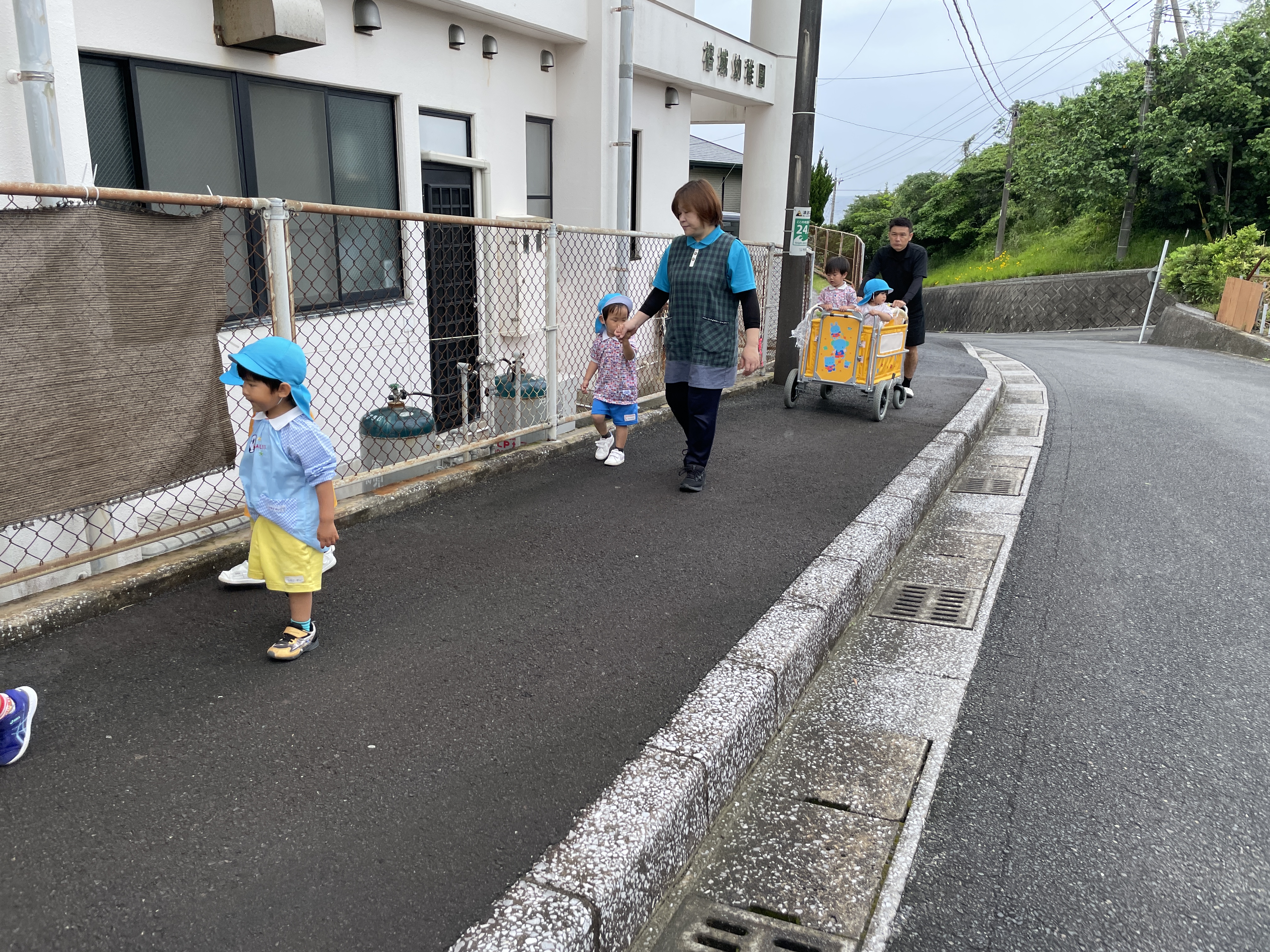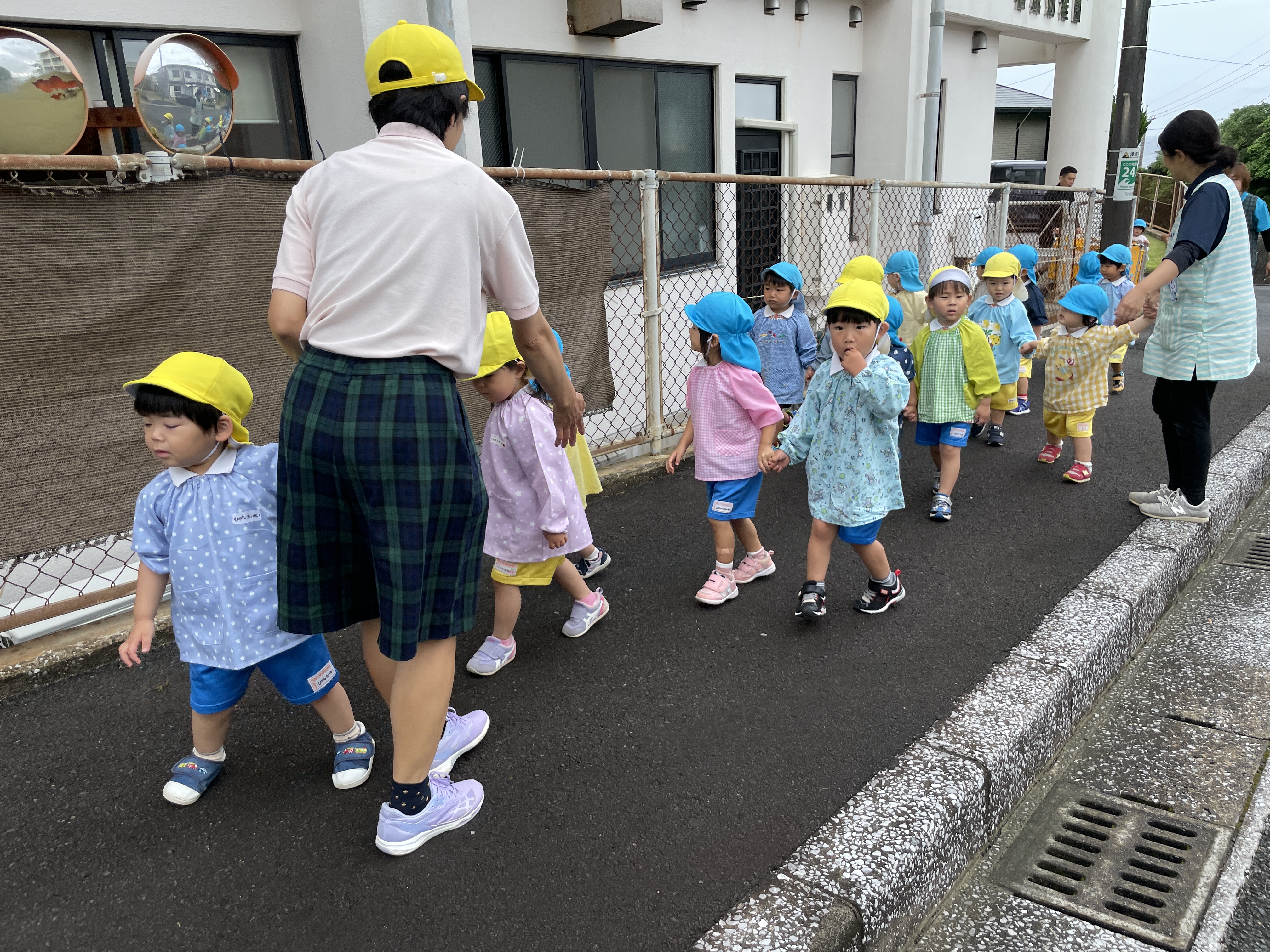 曇り空ではありましたが、おてて~つないで♫歩いて行きました。