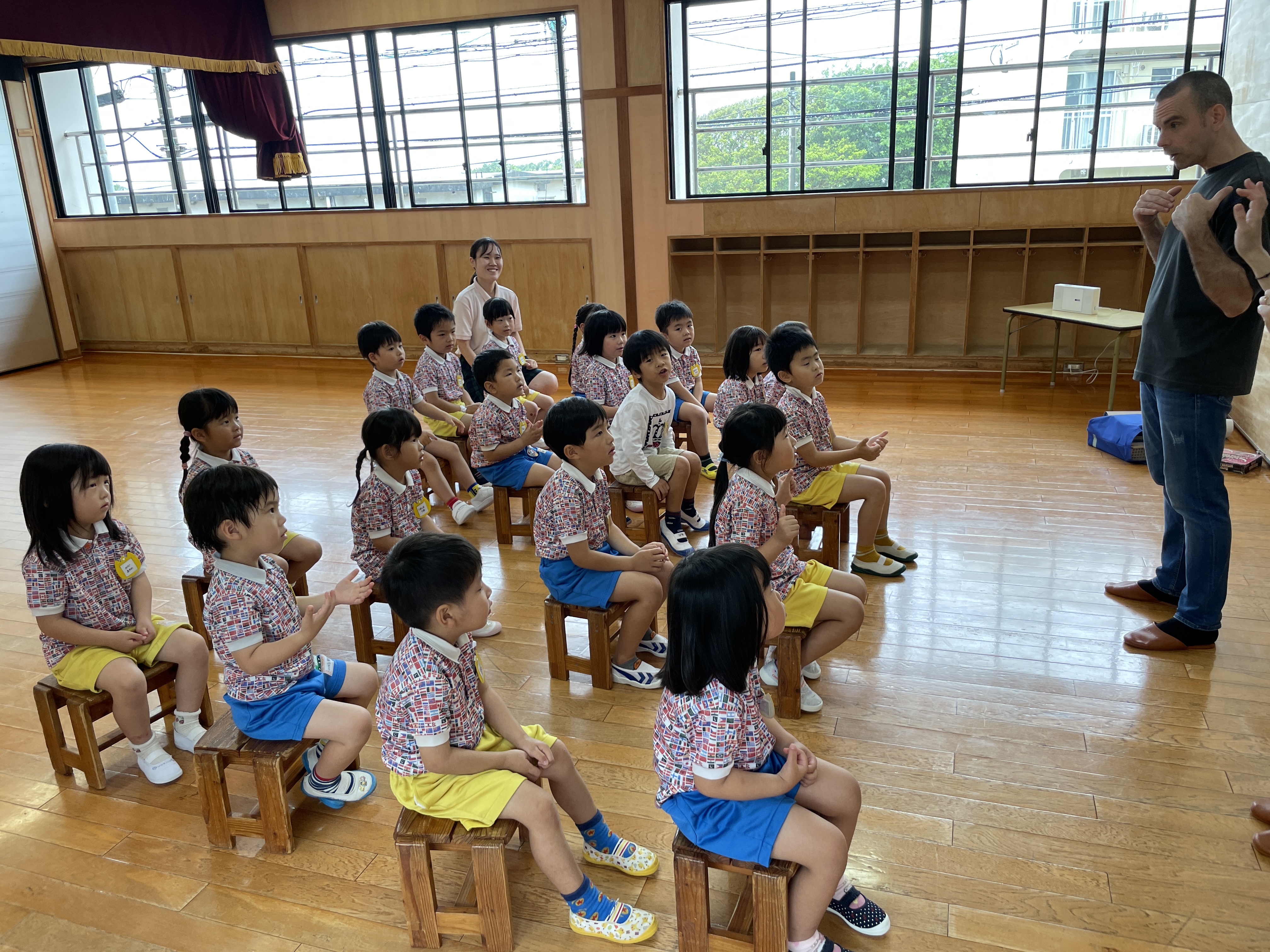 アラジンさん・ピーターパンさんは挨拶、自己紹介、曜日や天気、等々盛り沢山!!