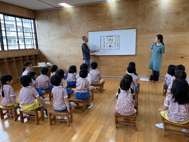 今月から新しい先生と一緒にE.E(エンジョイイングリッシュ)を楽しみます。