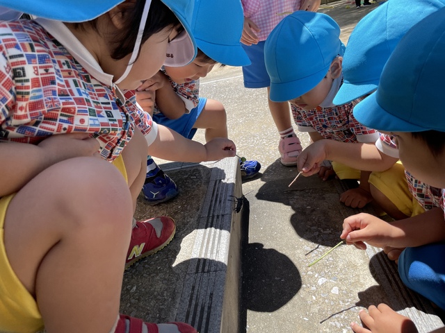園庭では「カミキリムシ」発見!!おおさわぎ!!でした。