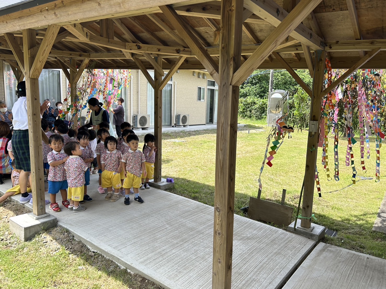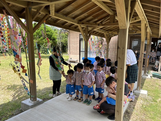 皆様に元気な歌や心を込めて作った七夕飾りをプレゼントしてきました。
