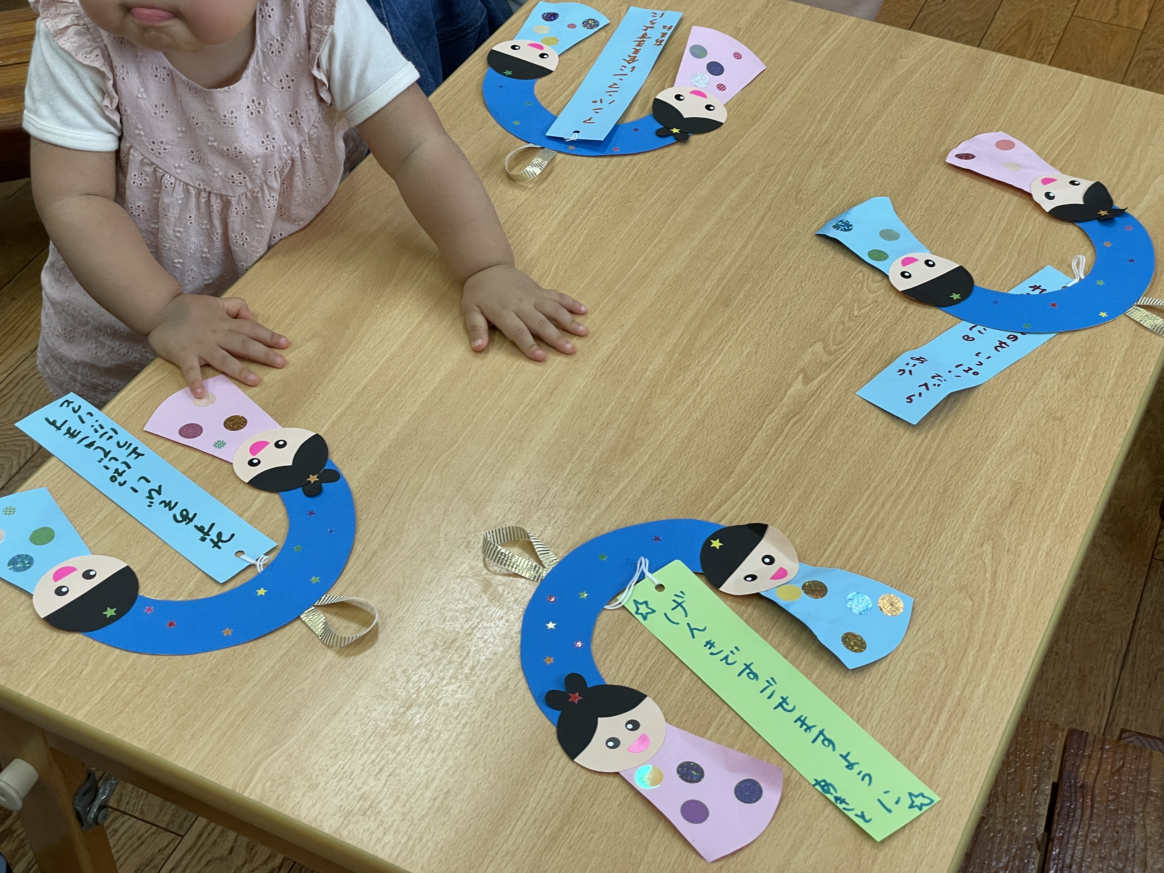 おりひめさま☆ひこぼしさまのお顔を作ったり、洋服にシールを貼ったり