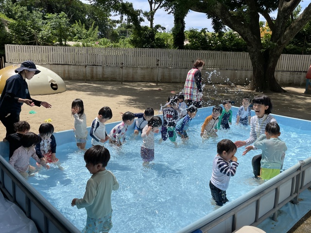水が飛んできてもヘッチャラ!!のお子様がいっぱいで驚いています。
