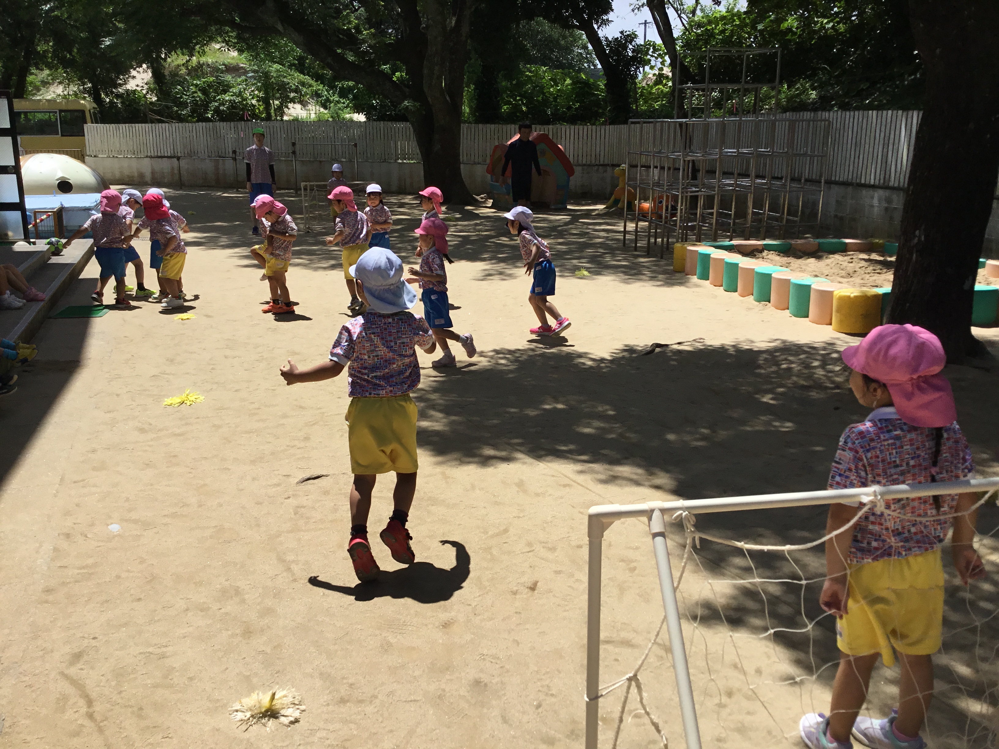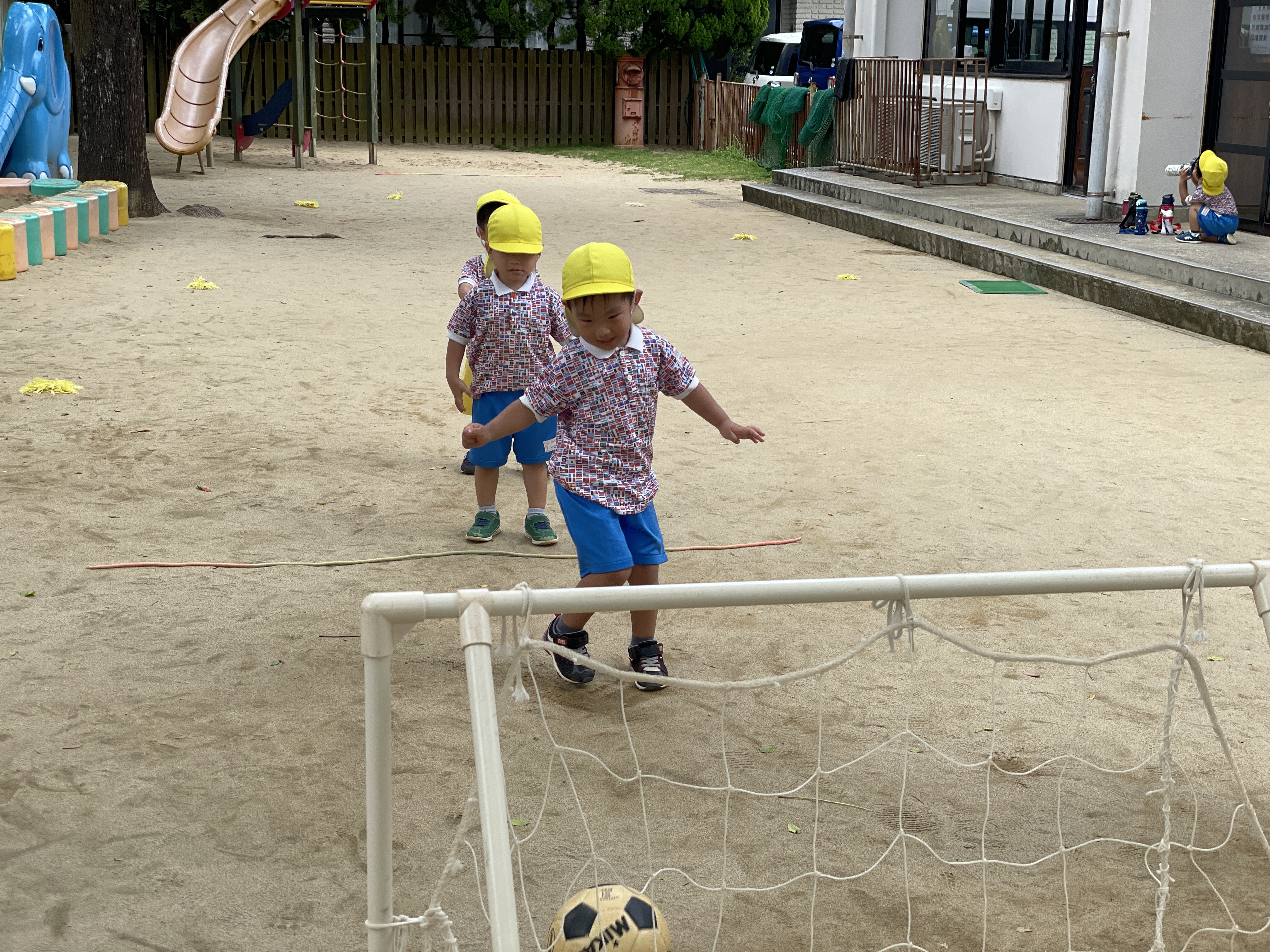 暑い中でしたが、ボールを一生懸命に追いかけるお子様方。