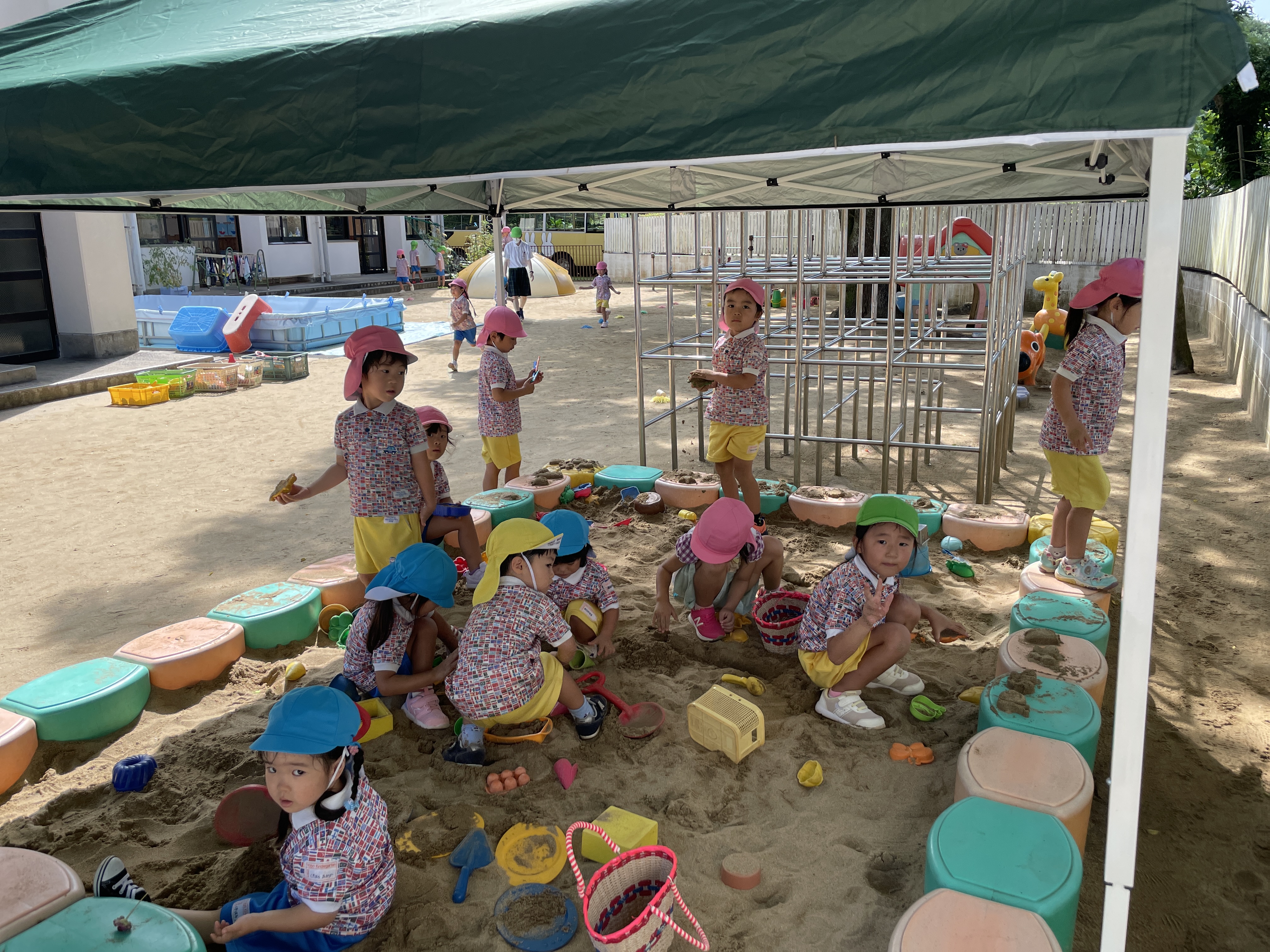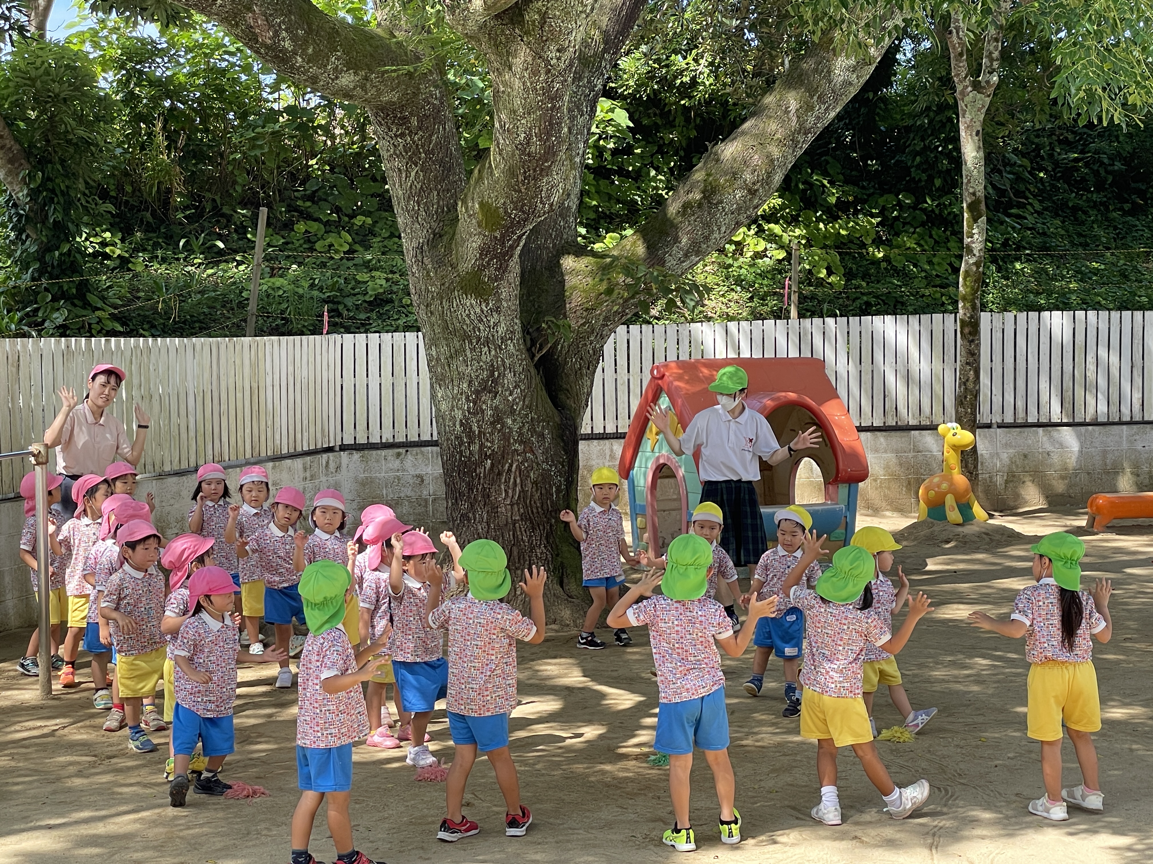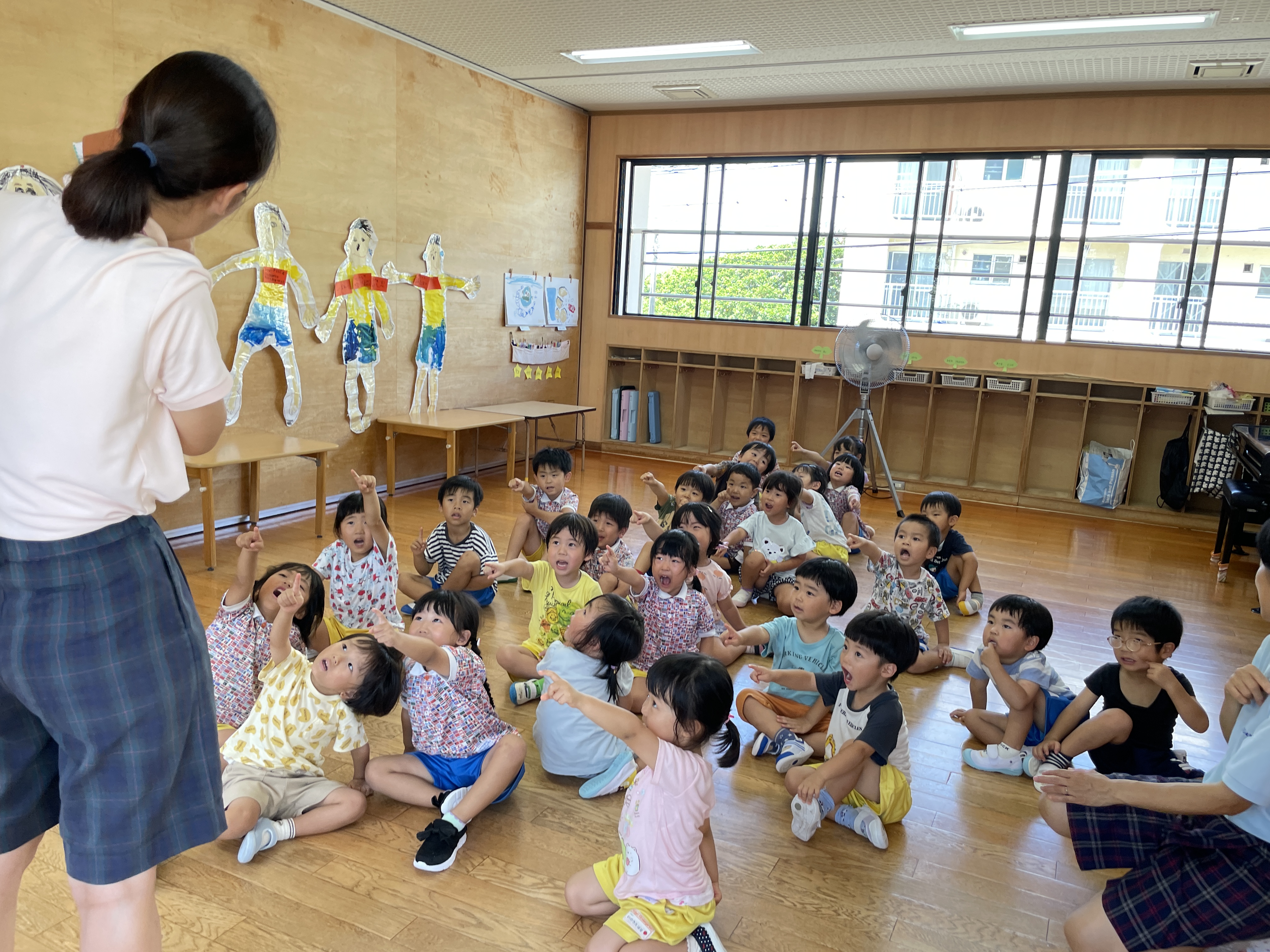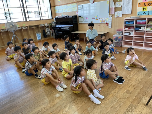 暑い中でしたがお子様方は元気いっぱいに園庭でも遊んだり体操したり