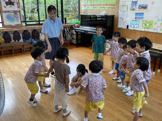 げんこつやまのたぬきさん かごめかごめ あ~がりめ さ~がりめ… 楽しんでいました♬