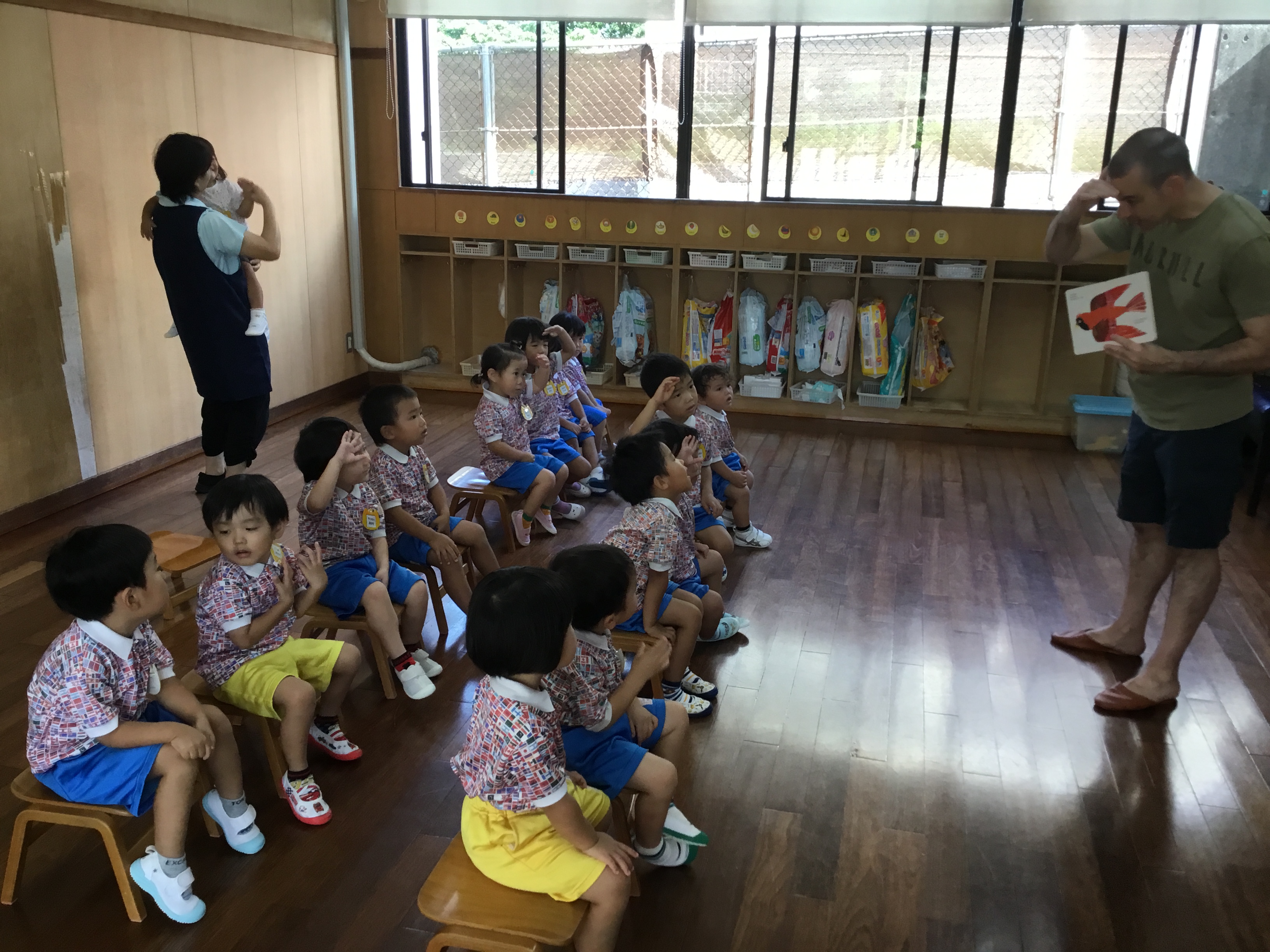 マイケル先生・ゆき先生の顔が見えるととっても嬉しそうなお子様方。